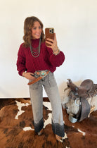 The It Girl Cable Knit Sweater is your go-to for cozy western charm with a bold statement. Featuring a chunky cable knit texture in a rich, standout hue, this sweater is both timeless and eye-catching. Perfect for layering or wearing on its own, it’s a must-have for any modern cowgirl’s wardrobe.