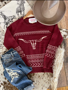 Out To Pasture - Longhorn Sweater (Wine) 2.0