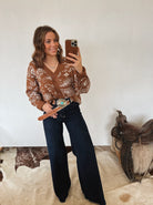 Pair it with high-rise denim and a statement belt for a true western-chic look, or layer over a simple tank and boots for cozy weekend vibes.