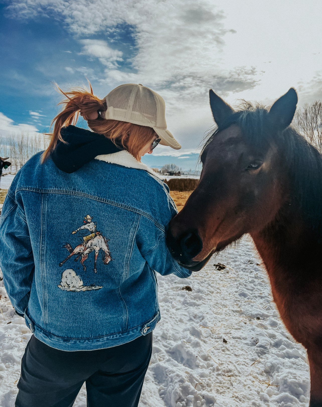 Cody Rank Roan Denim Sherpa Jacket(Adult)(Lt. Blue)