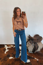 Tuck it into wide-leg denim and add a statement belt for a bold western look, or wear it with a flowy skirt and boots for a cozy yet feminine outfit.