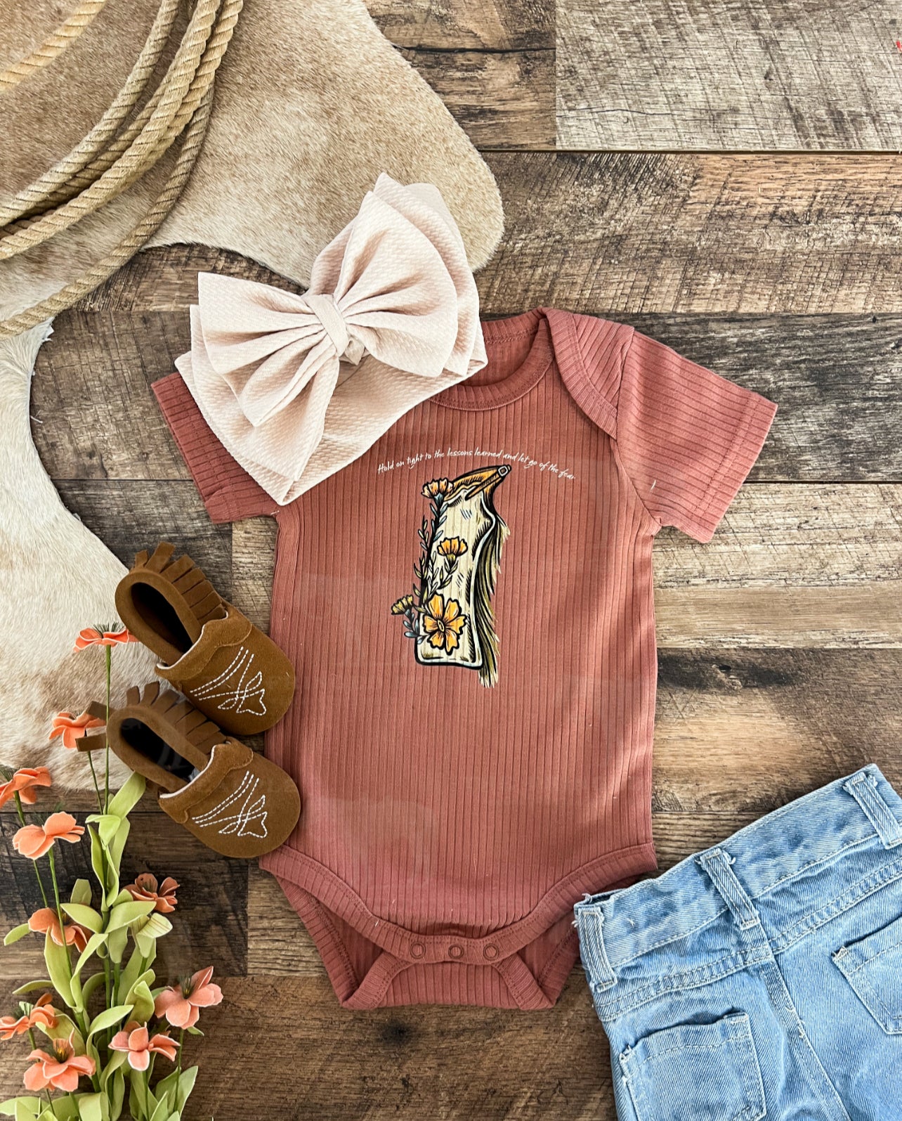 Wildflower Chaps (S/S Ribbed Onesie/ Tee) (little kid)(Rust)