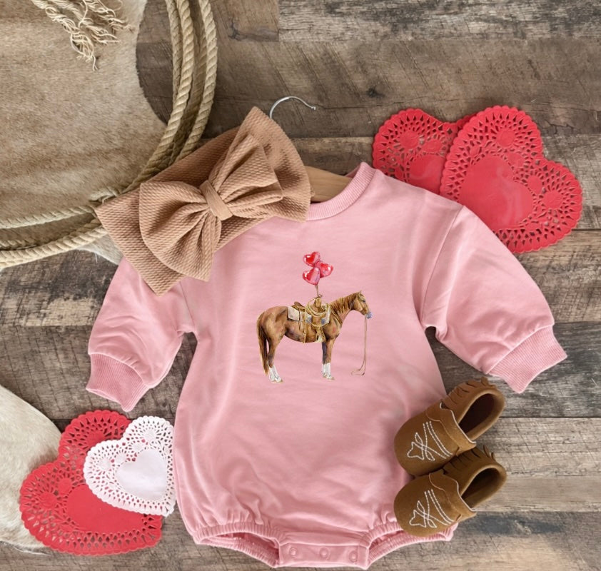 Balloon Horse Valentines Bubble Romper (Infant)( (Pink)