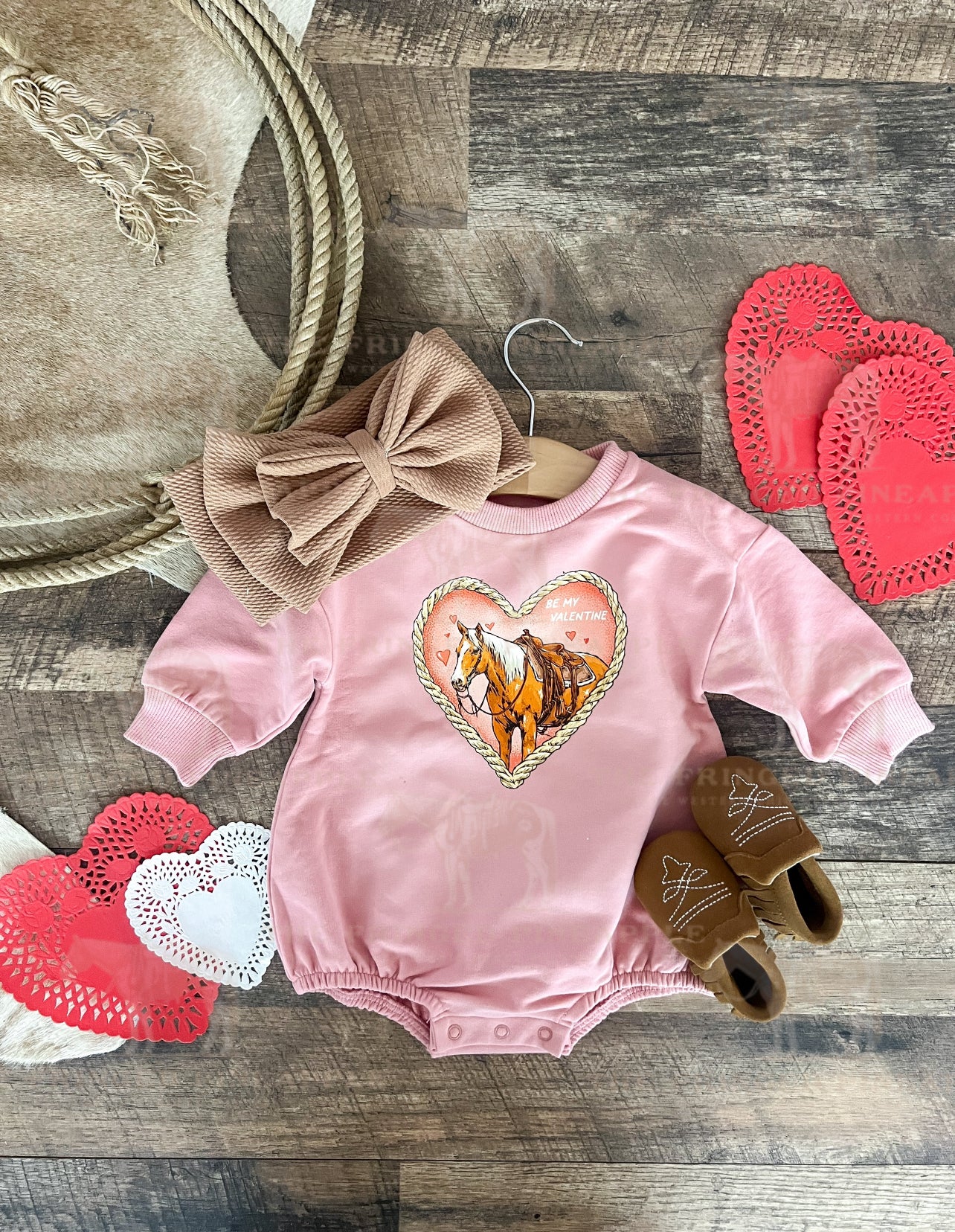 Heart Horse Valentines Bubble Romper (Infant) (Pink)