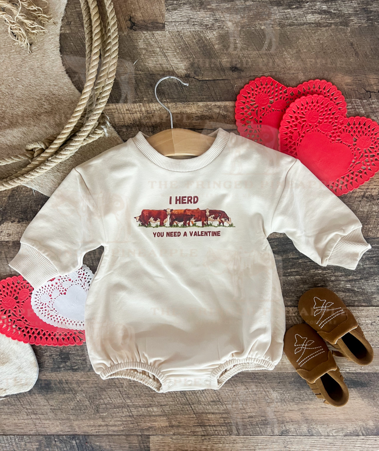 I Herd Valentines Bubble Romper (Infant) (Cream)