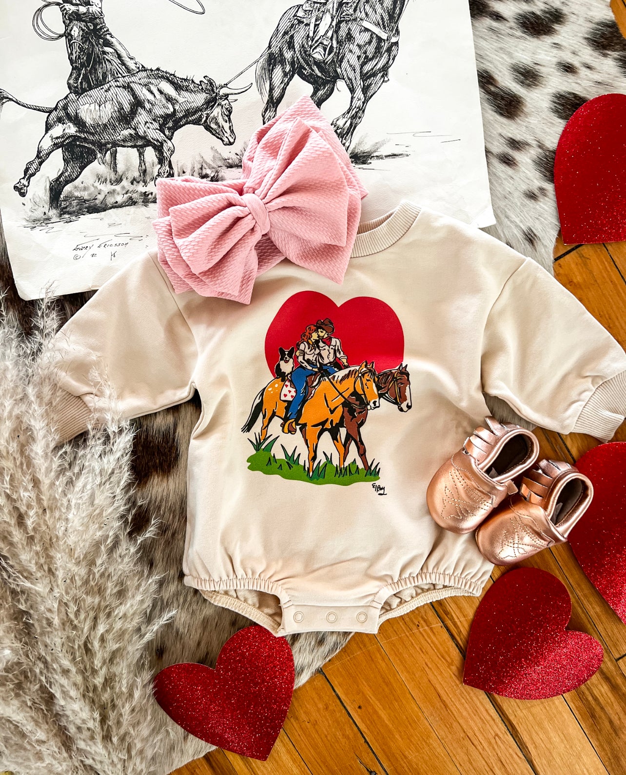 Rancher Lovers Valentine Bubble Romper (Infant) (Cream)