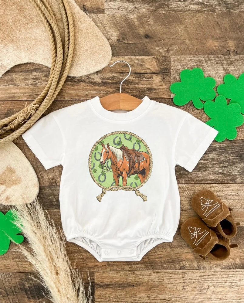 Luck Of The Horse S/S Rodeo Bubble Romper (Infant)(white)