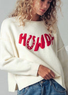 Bring a playful touch of western charm to your winter wardrobe with this cozy “Howdy” slogan knit. Designed in a soft, midweight blend, it offers everyday comfort with a fun, bold personality. The classic crew neckline and ribbed trim give it a structured yet relaxed feel—perfect for dressing up your casual denim or adding a little western flair to your cold-weather looks.