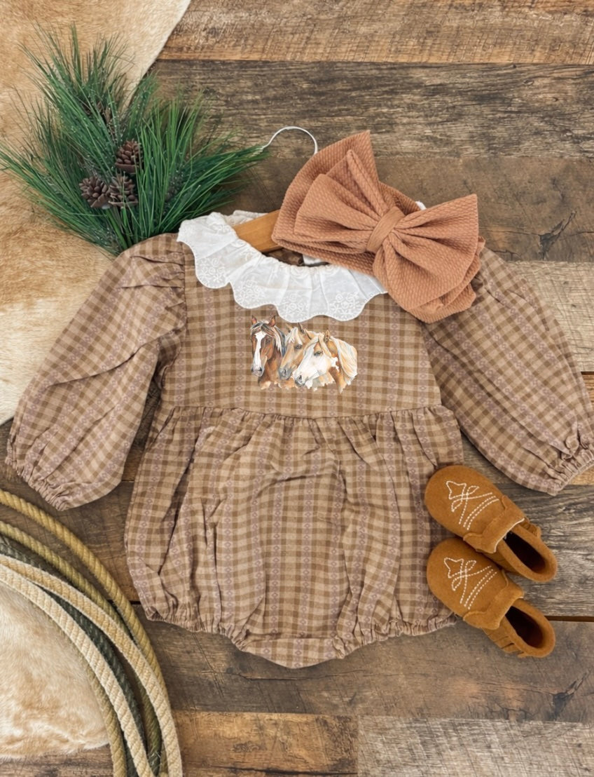 Three Is A Charm Horse Flannel Romper