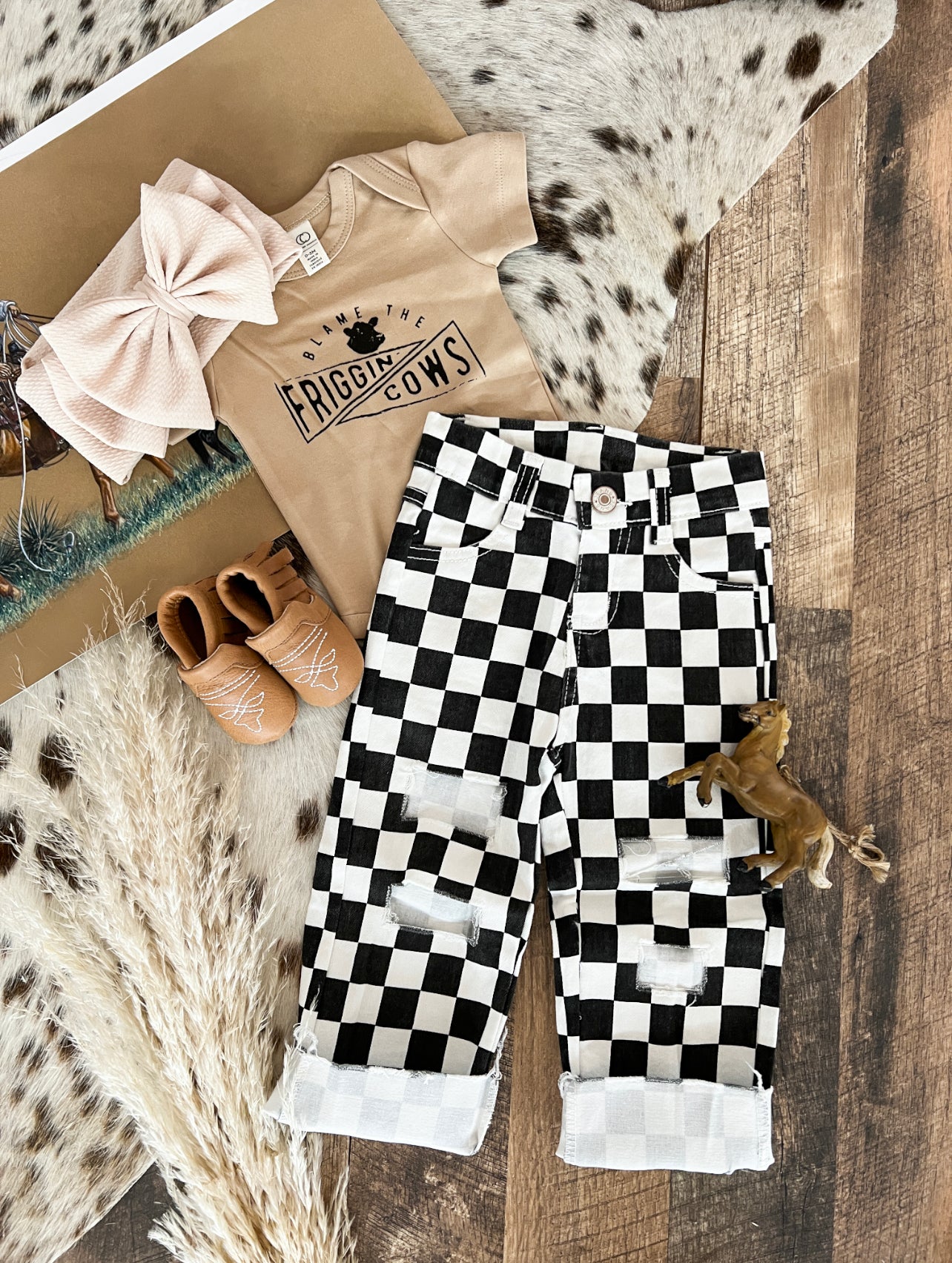 Saddle up your little one in style with these Western Denim Little Kid Blue Checkered Jeans. Made from high-quality denim, they feature a classic checkered design and a comfortable fit. Perfect for playdates at the ranch or a day at the park.