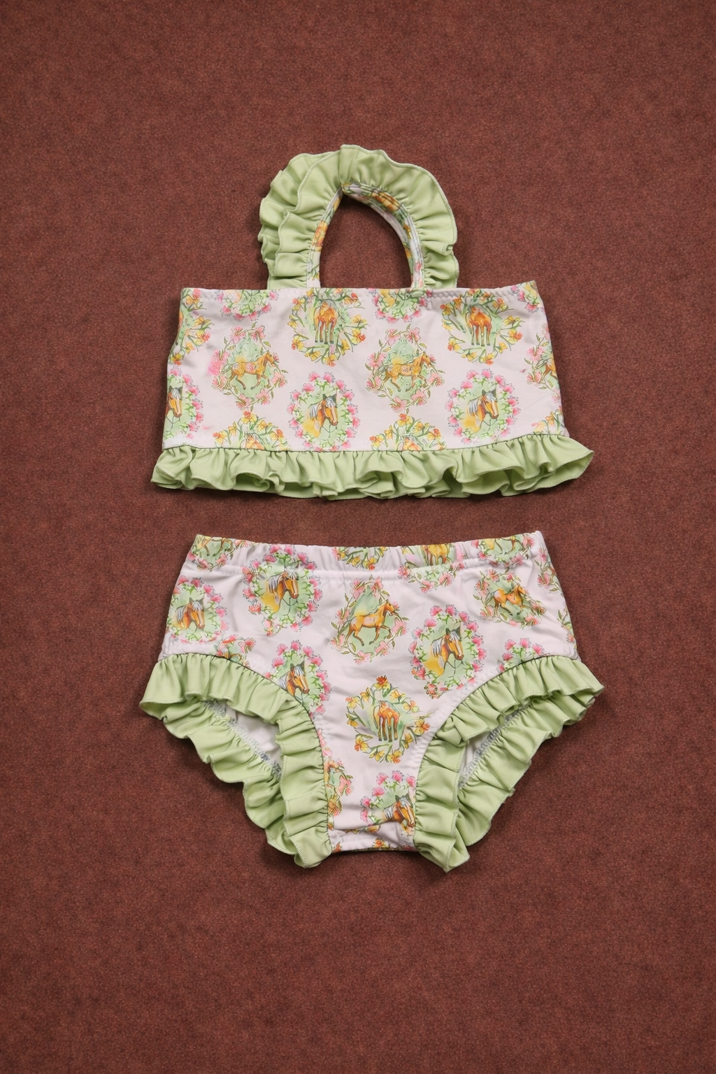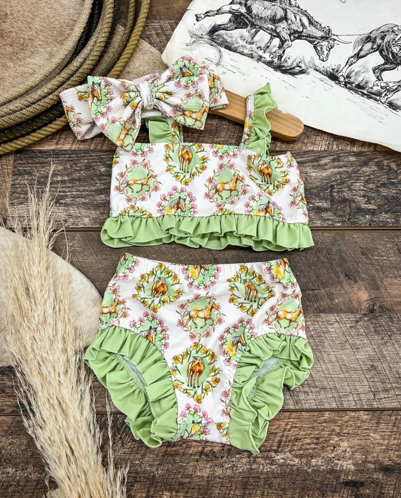 Floral Horse Spring Two Piece Ruffle Swimsuit (Minis)