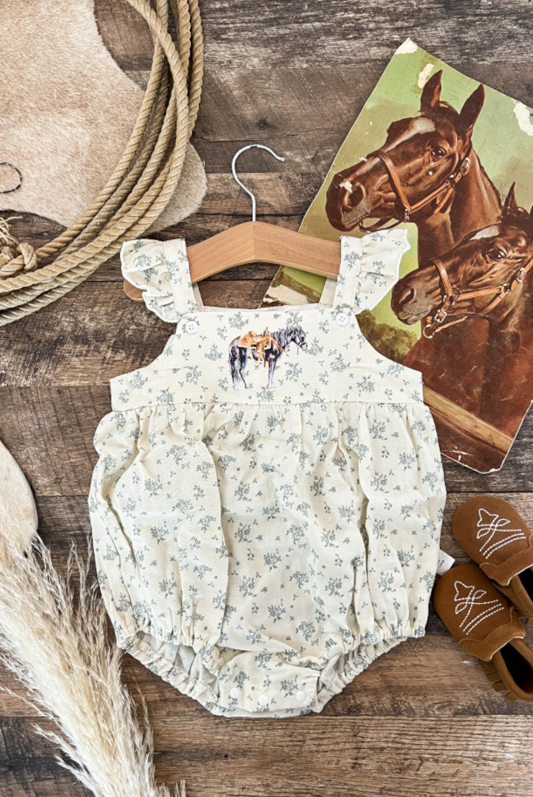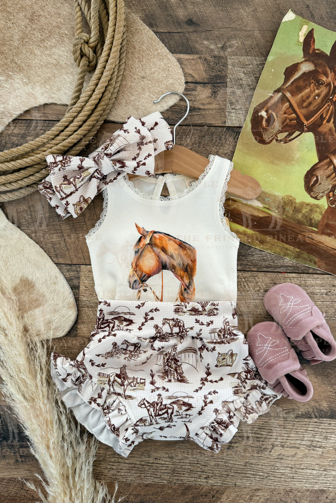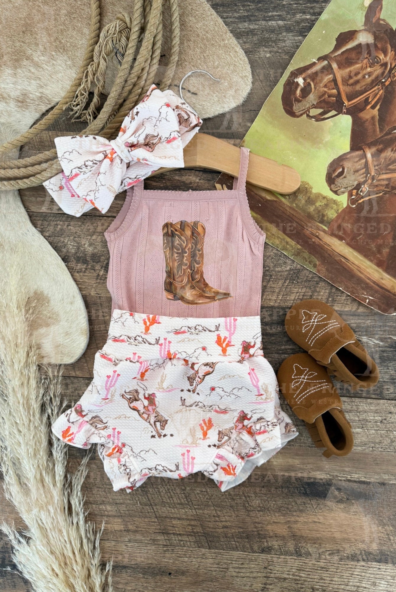 Custom designs, inspired by the western lifestyle, for cowkid at the rodeo or the buckaroo/cowgirl on the ranch. Western graphics tees & western onsies. Pattern western pajamas, and sets. Dressing the cowkids in the best western baby boutique clothing.