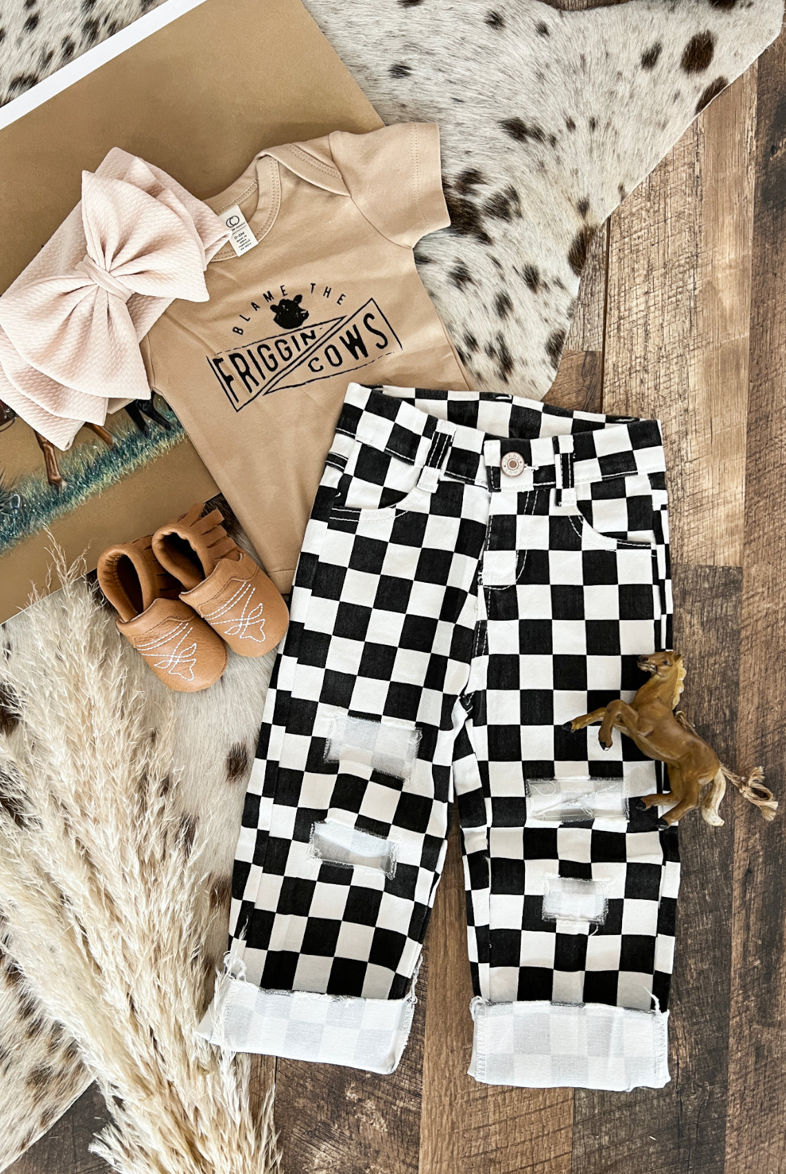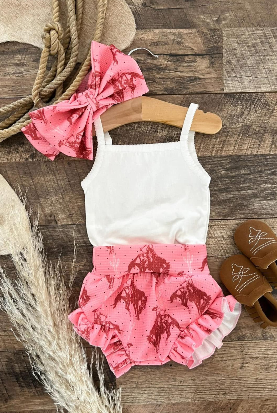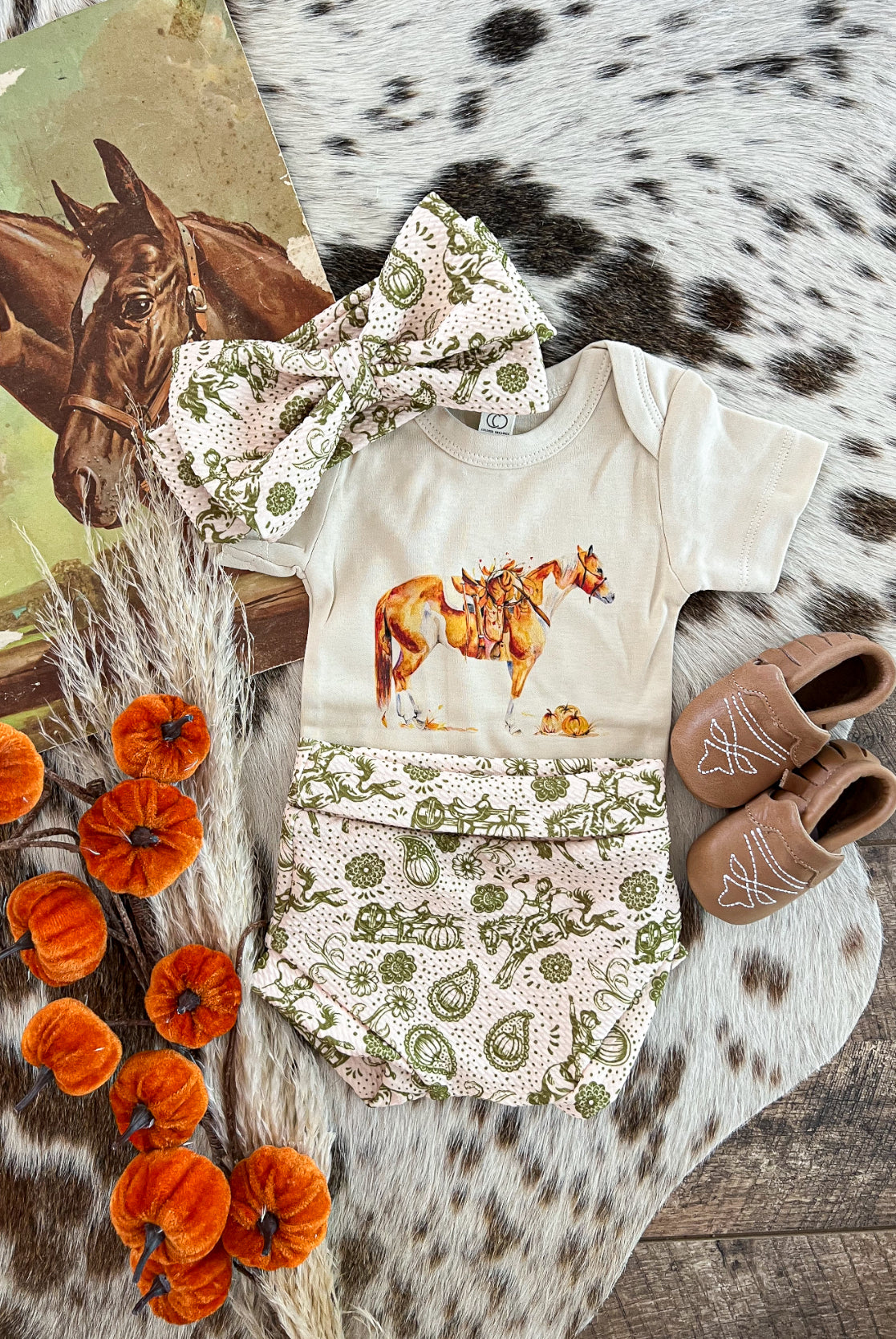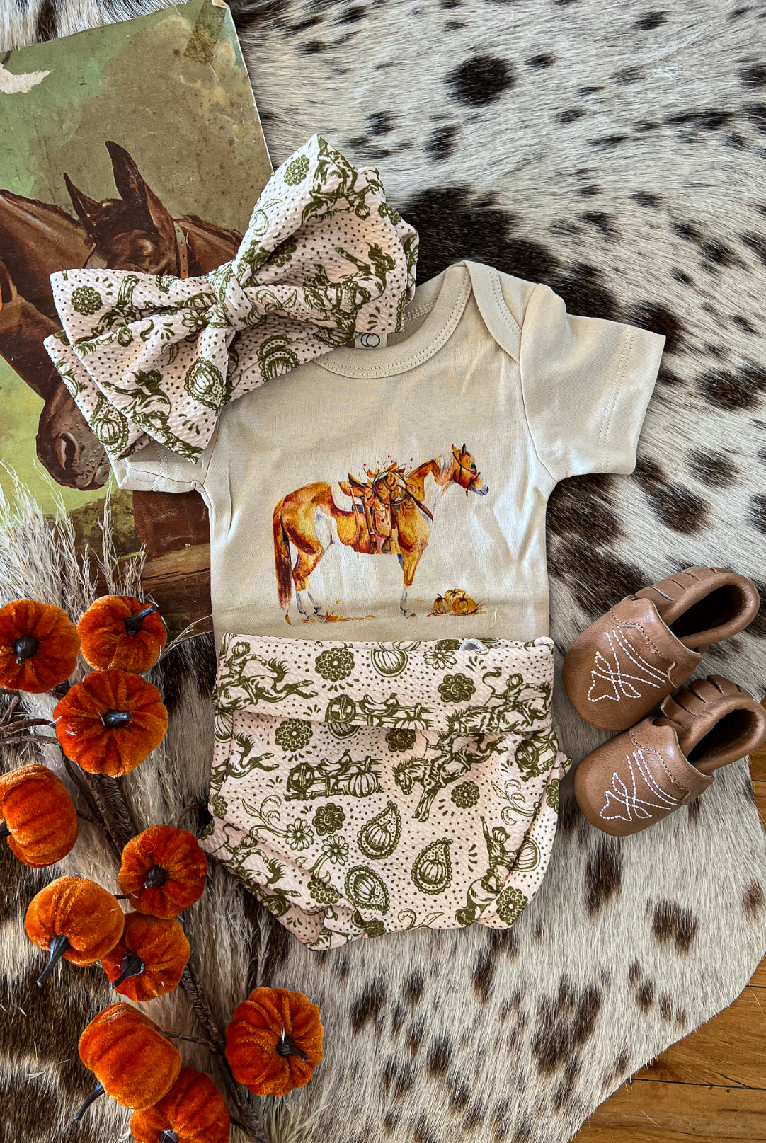 Custom designs, inspired by the western lifestyle, for cowkid at the rodeo or the buckaroo/cowgirl on the ranch. Western graphics tees & western onsies. Pattern western pajamas, and sets. Dressing the cowkids in the best western baby boutique clothing.