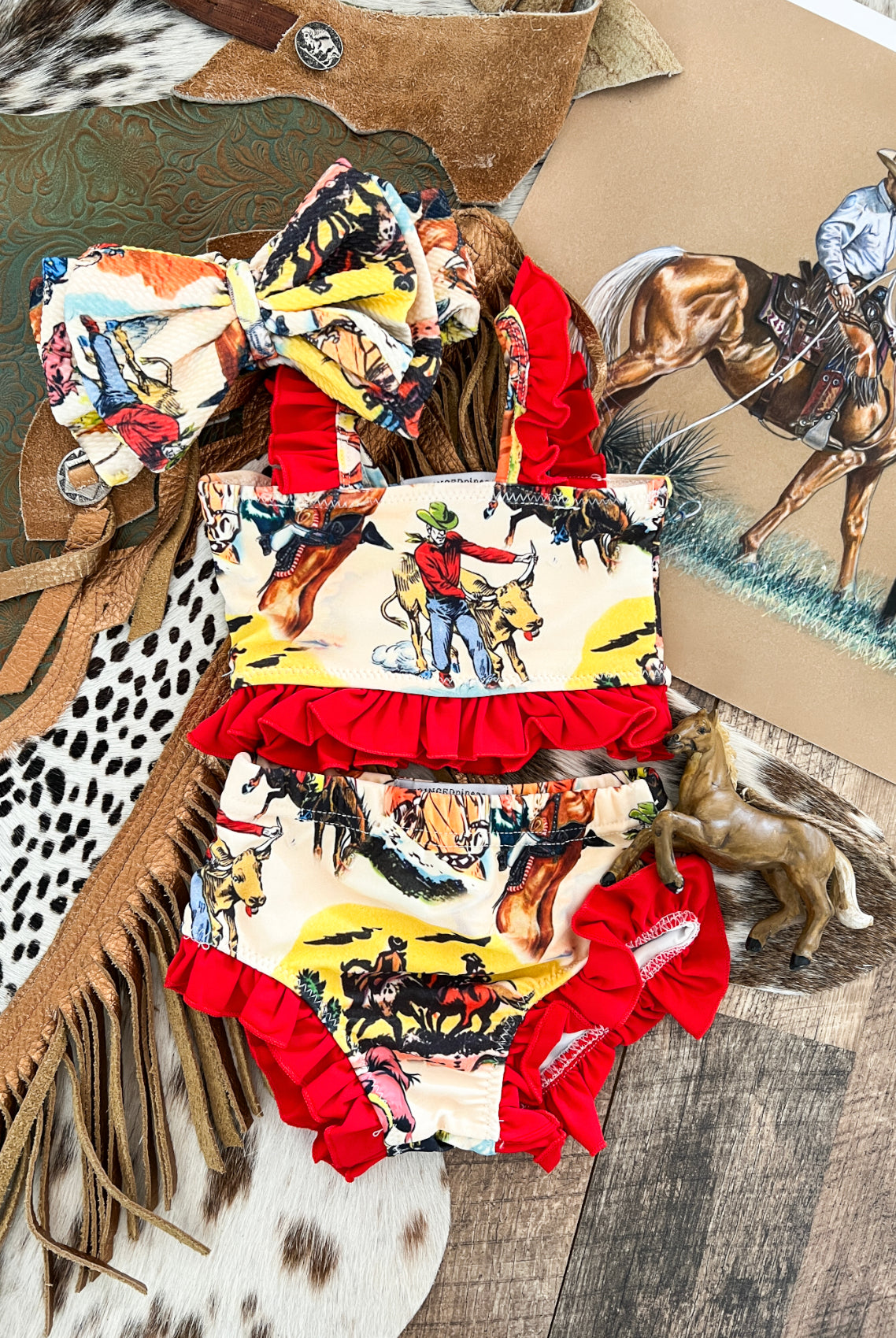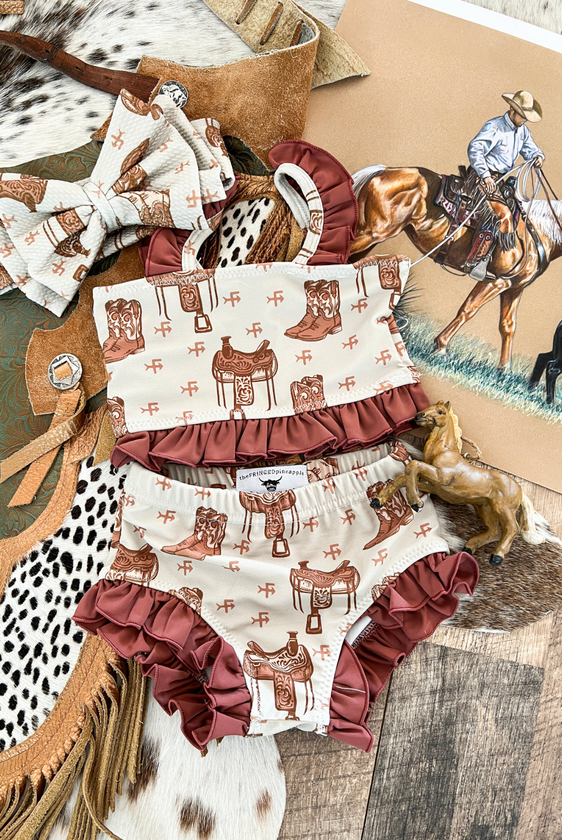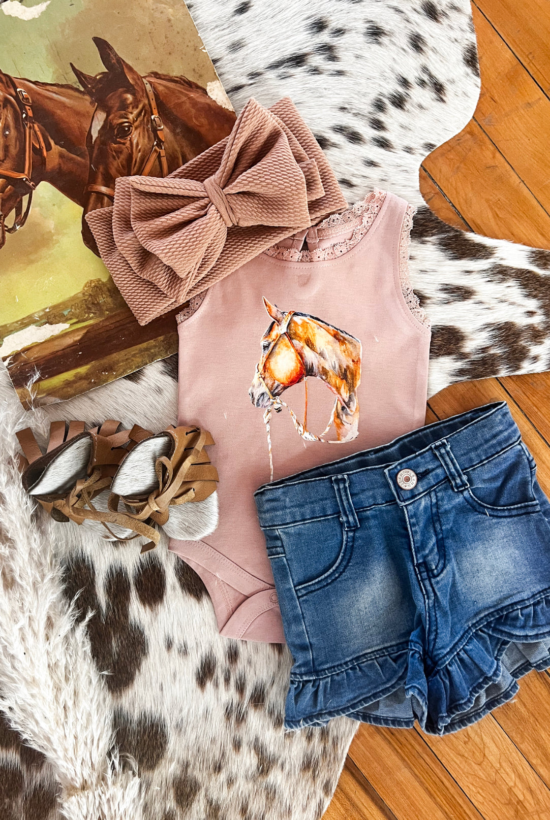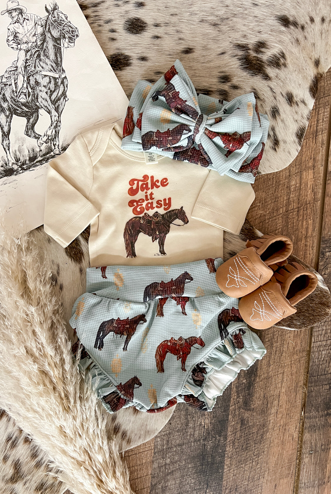 Custom designs, inspired by the western lifestyle, for cowkid at the rodeo or the buckaroo/cowgirl on the ranch. Western graphics tees & western onsies. Pattern western pajamas, and sets. Dressing the cowkids in the best western baby boutique clothing.