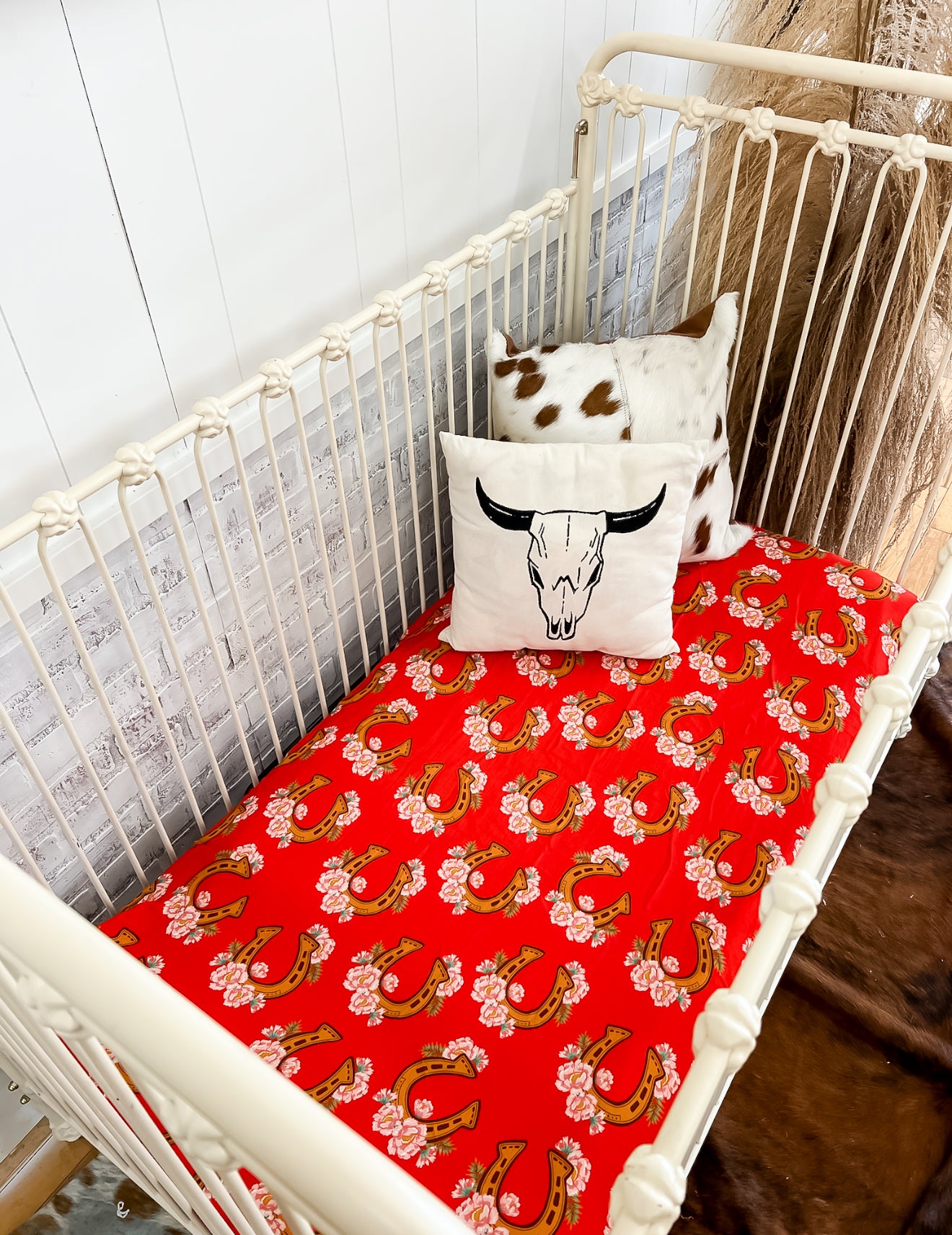 Bring a little frontier flair to your nursery with this Fitted Crib Sheet! It’s soft as a prairie breeze and perfect for giving your little one a cozy place to rest their head. Crafted from breathable, lightweight organic bamboo muslin, this fitted sheet is gentle on baby’s delicate skin and fits standard crib mattresses like a glove. A must-have for any western-themed nursery or horse-loving home.