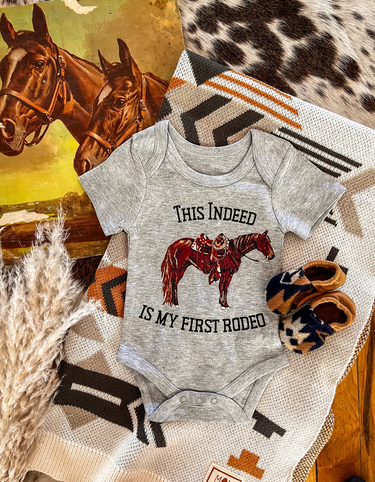 Indeed My First Rodeo S/S Onesie/S/S Tee(little kid)(Heathered Grey)