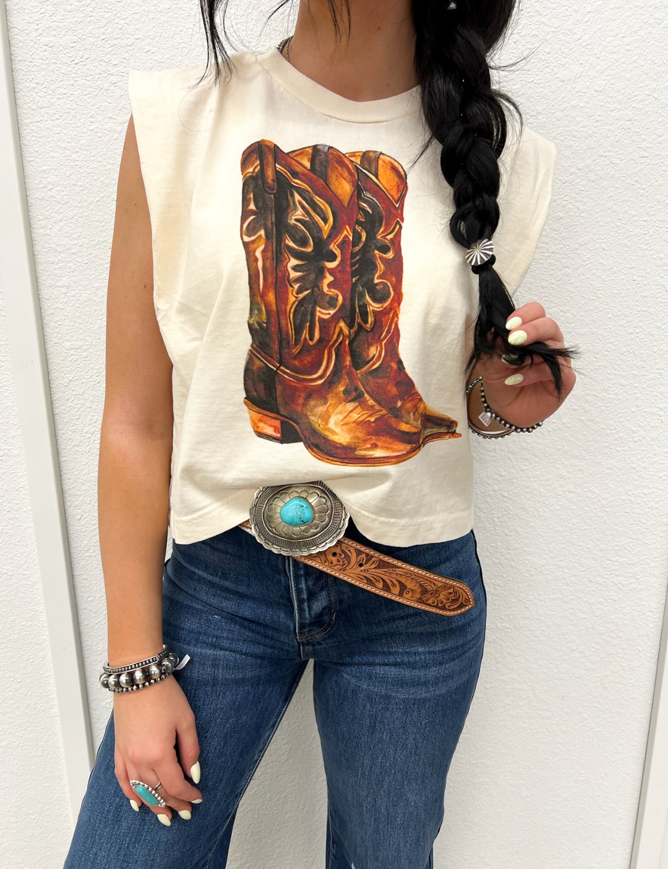 These Boots Muscle Tank(Adult)(Faded Cream)