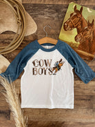 Cow Boys -Western Graphic Baseball Tee (Toddler)(White/Blue)