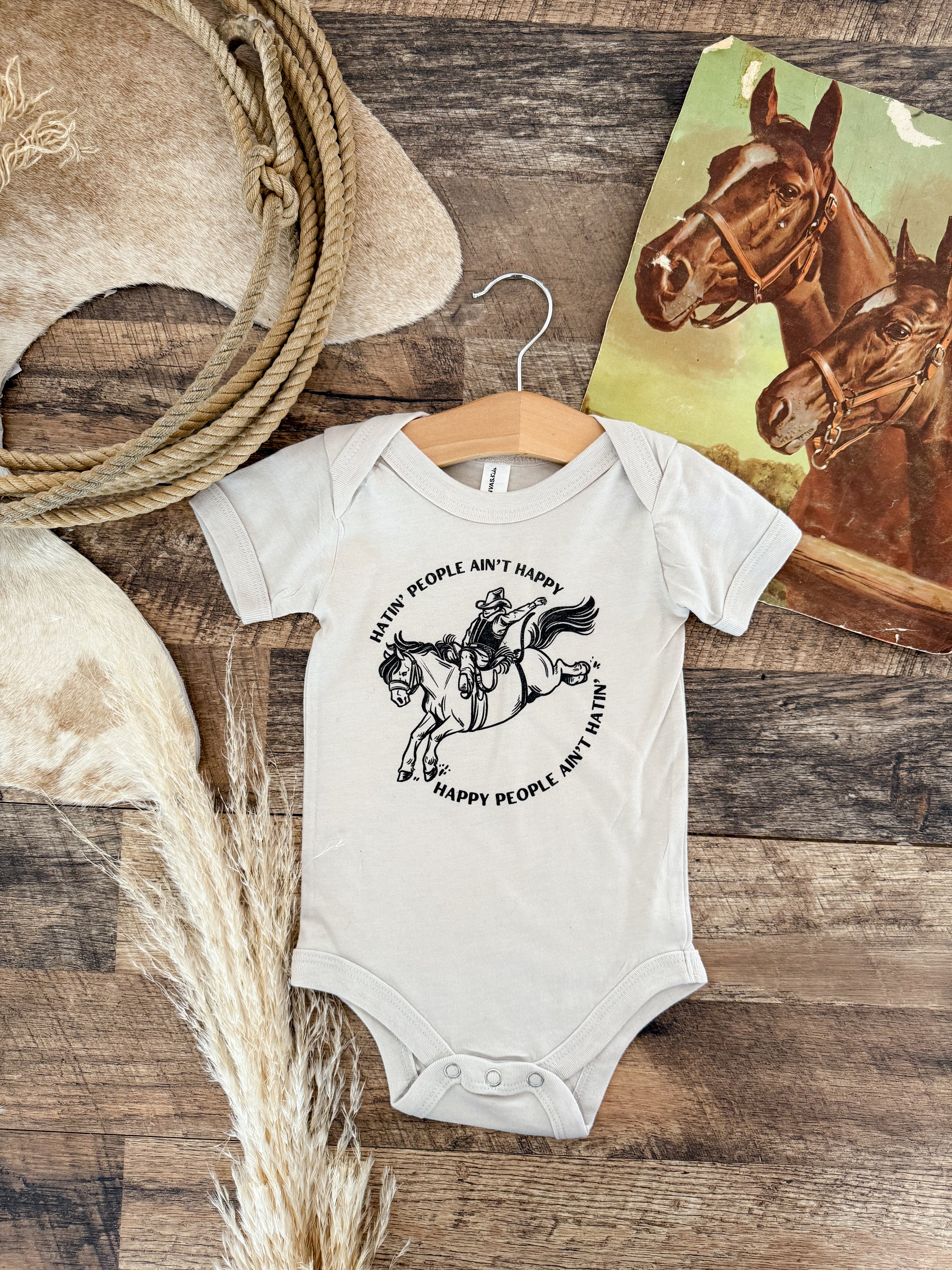 This soft ash onesie features a hand-drawn western graphic—made just for the next generation of cowgirls and cowboys.