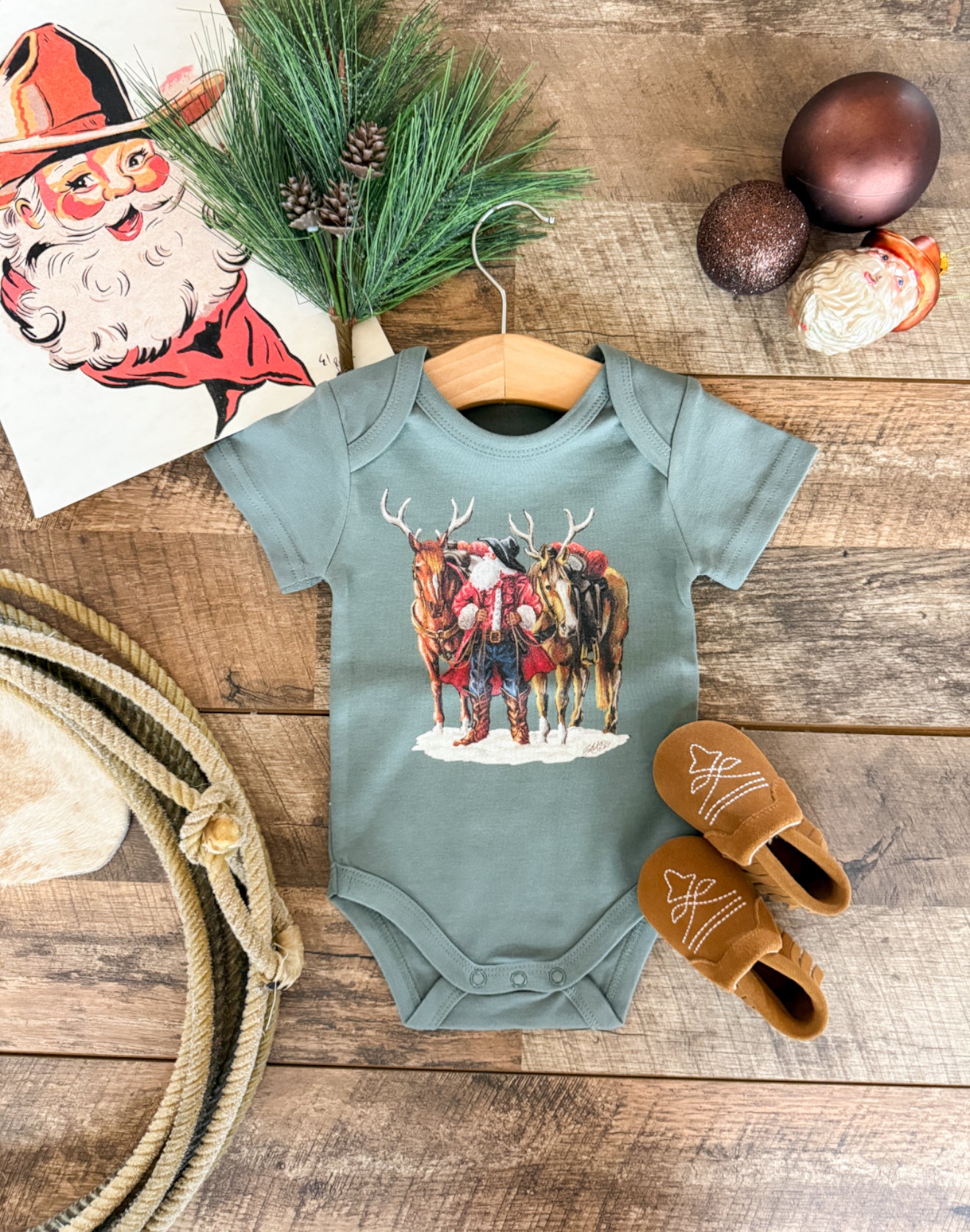 Santa & His Reinhorses Christmas Design (Onesie/Youth Tee) (emerald)