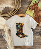 Let your little cowgirl kick up some dust in this soft cotton tee featuring a bold, vintage-style cowgirl boots graphic. With its classic fit and comfy feel, it’s perfect for rodeo days, playdates, or just showing off her western spirit wherever she goes.