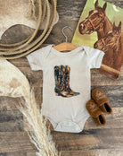 Big cowgirl energy for the tiniest wranglers. This soft ivory short sleeve onesie features a vintage-inspired cowgirl boots graphic front and center, bringing a bold western vibe with a sweet touch. Crafted from breathable cotton with convenient snap closures for easy changes, it’s made for comfy days on the ranch—or just looking cute as can be.