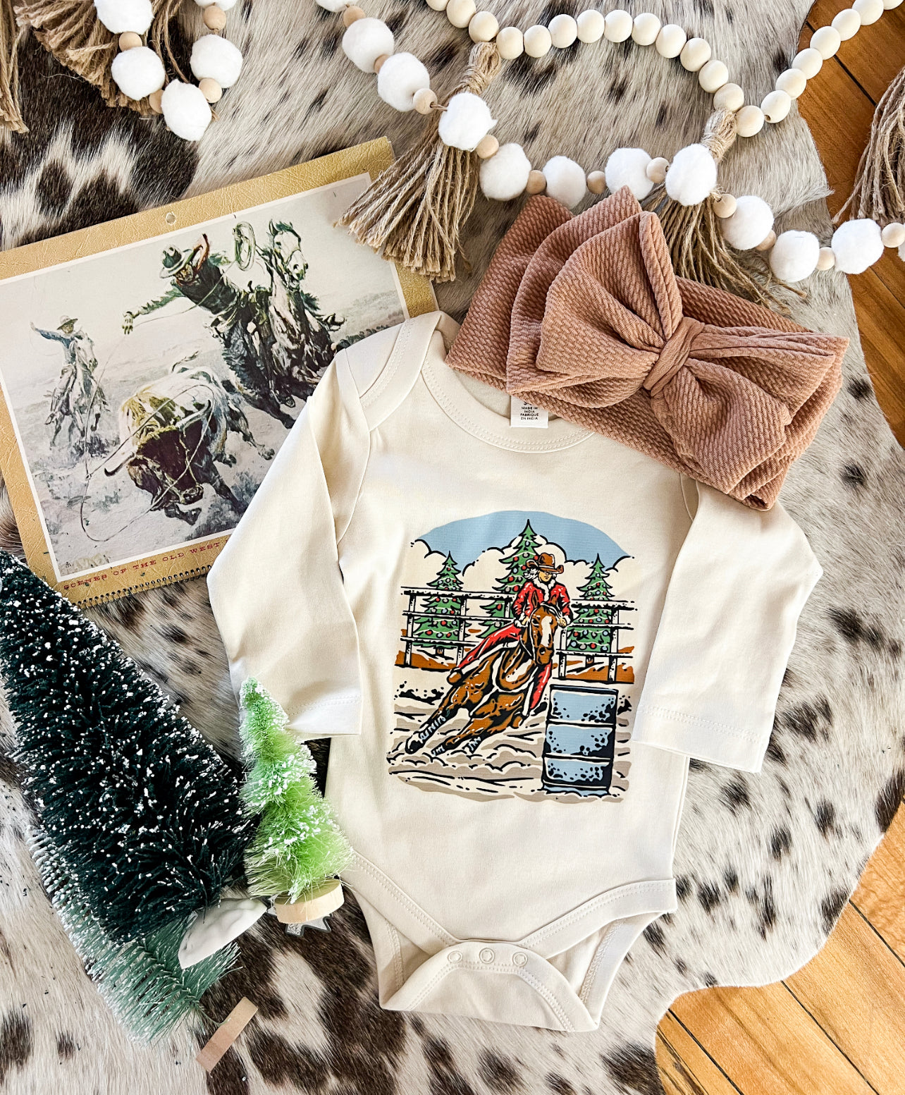 Barrel Racer Longsleeve Onesie(little kid)(natural)