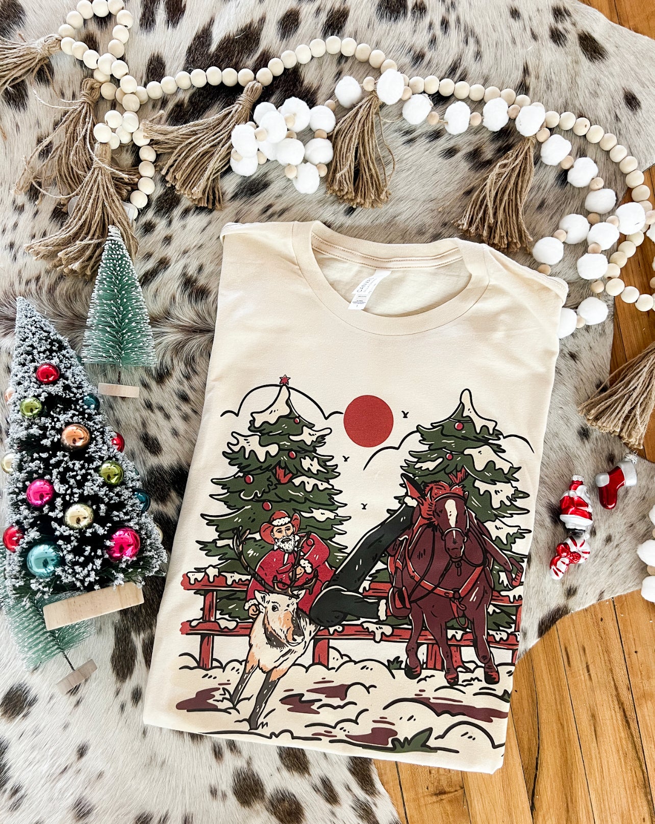 Bulldogger Cowboy Christmas Design (Youth Onesie/Tee)(cream)