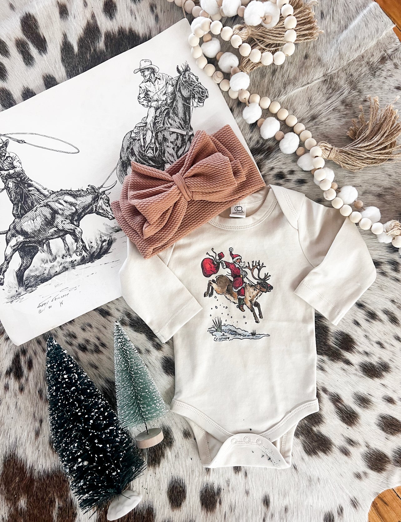 Cody Reindeeer Santa Longsleeve Onesie(little kid)(natural)