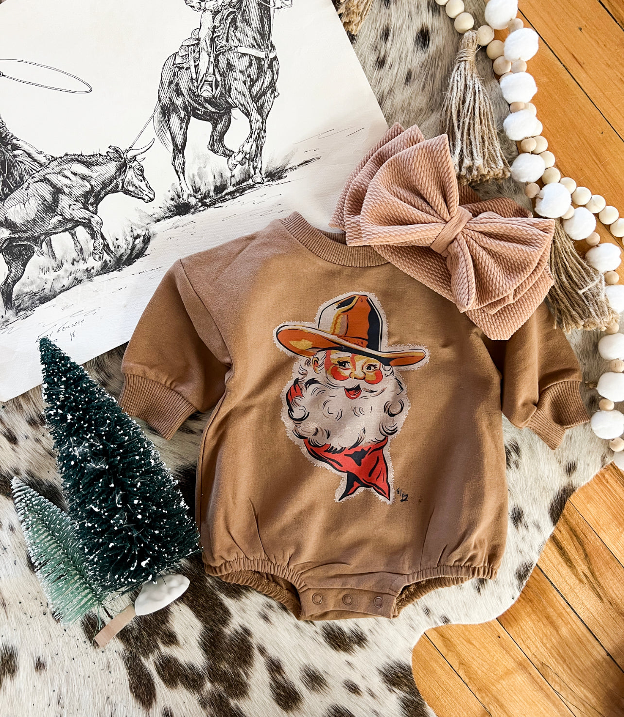 Cowboy Santa Christmas Bubble Romper (cognac)