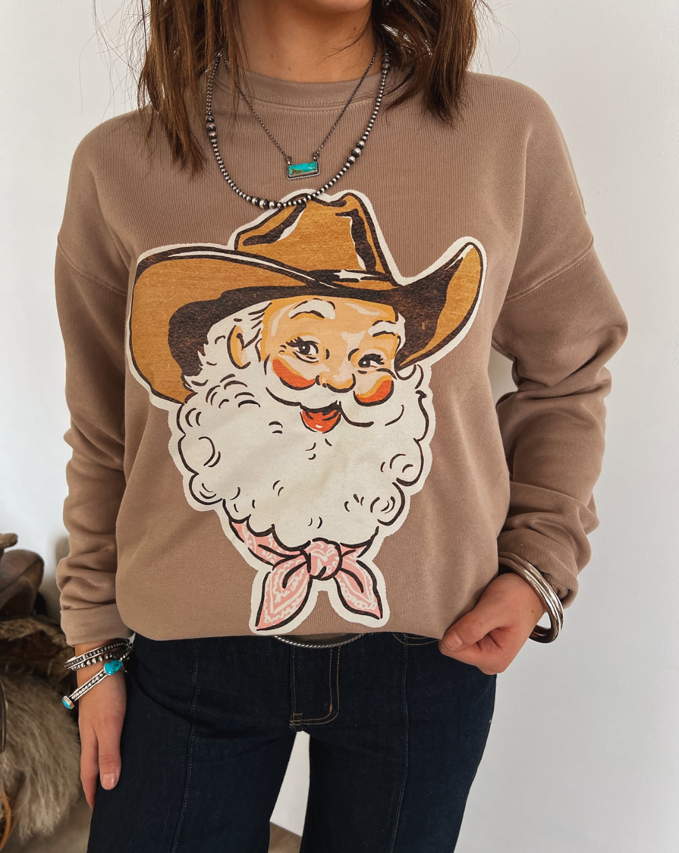Cowboy Santa Vintage Head Sweatshirt or Tee (mocha)