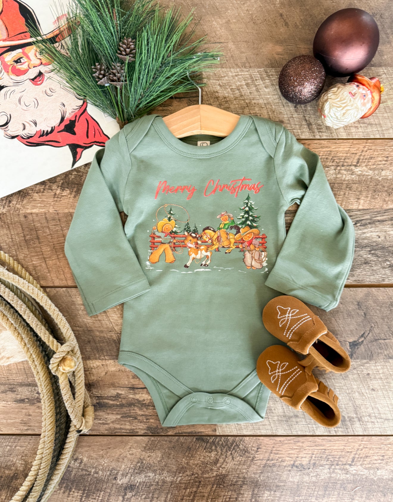 Celebrate the season Western-style with Christmas Rodeo design — a festive favorite for your little  cowgir or cowboyl! This holiday piece brings all the rodeo charm and Christmas cheer, perfect for photos, family gatherings, and cozy days on the ranch.