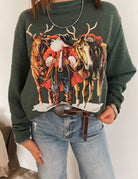 Cowboy Santa & His Reindeer Horses — Tee or Sweatshirt (Heather Green)
