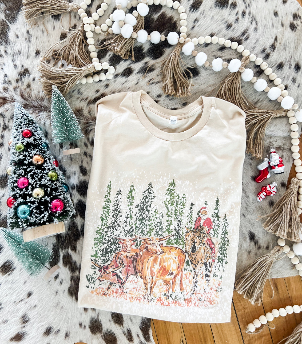Santa Herding Cows Christmas Design (Youth Onesie/Tee)(cream)