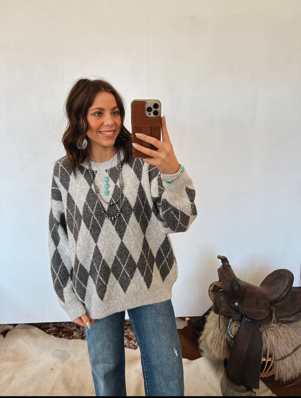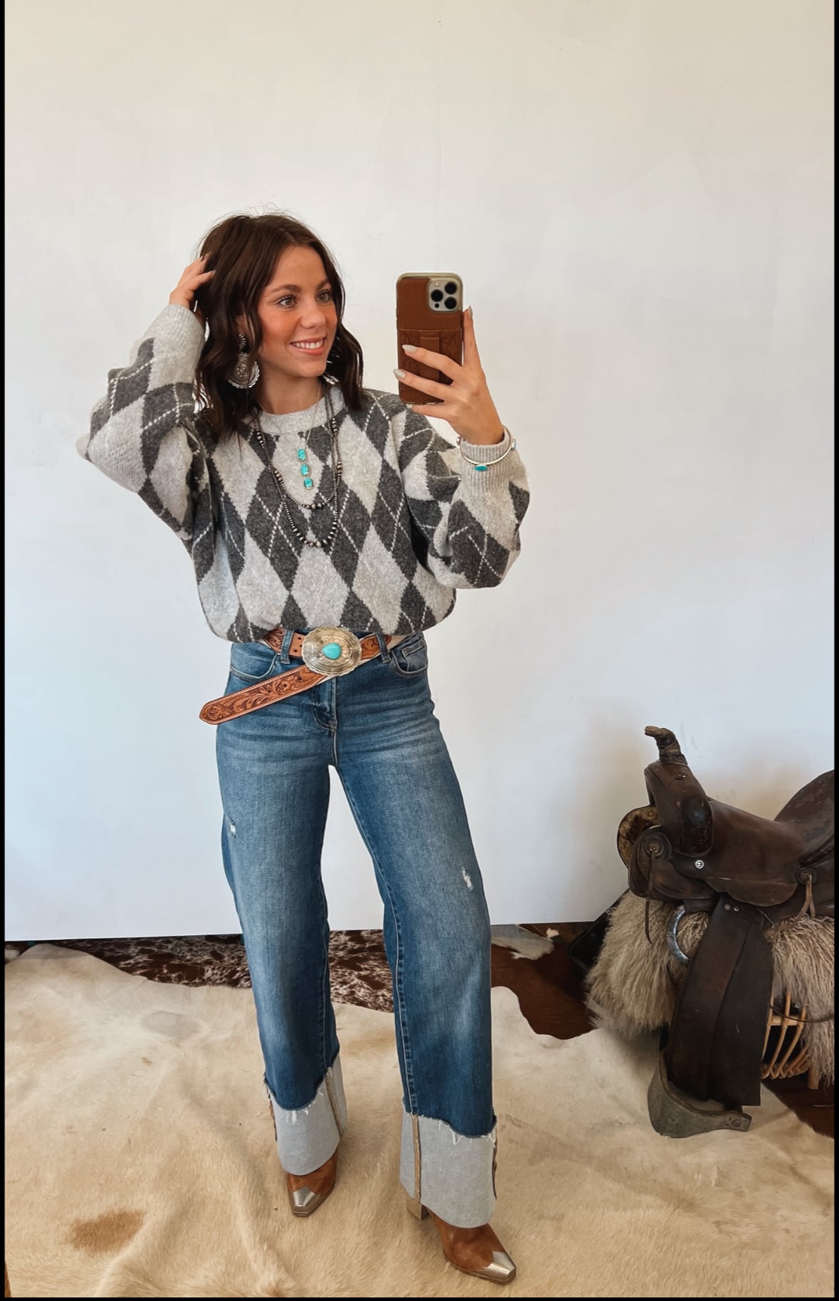 Pair with denim and boots for a simple, polished everyday look—or layer over a collared shirt for a more elevated Western-chic feel.