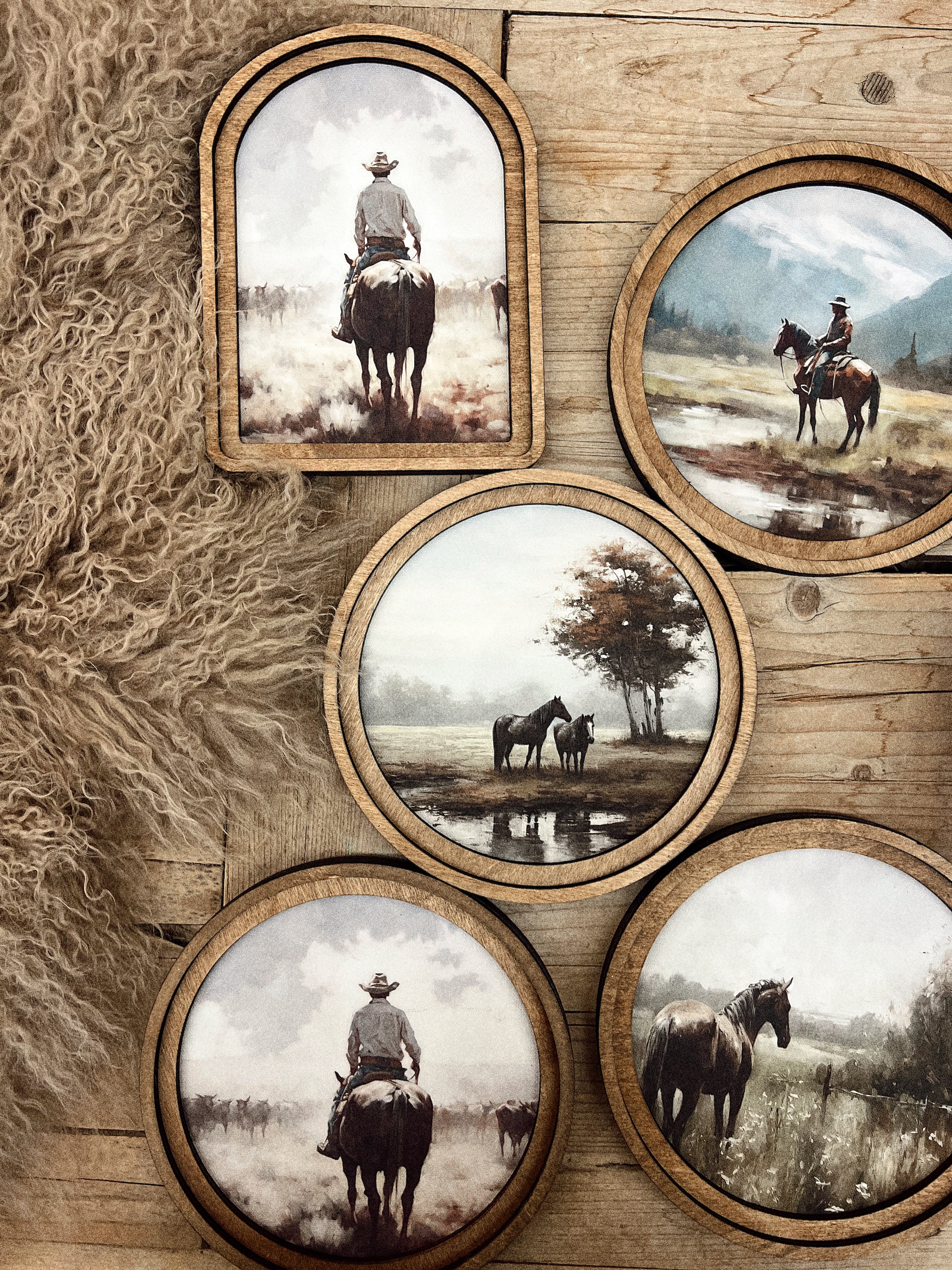 a cowboy way pictures with wood frame.