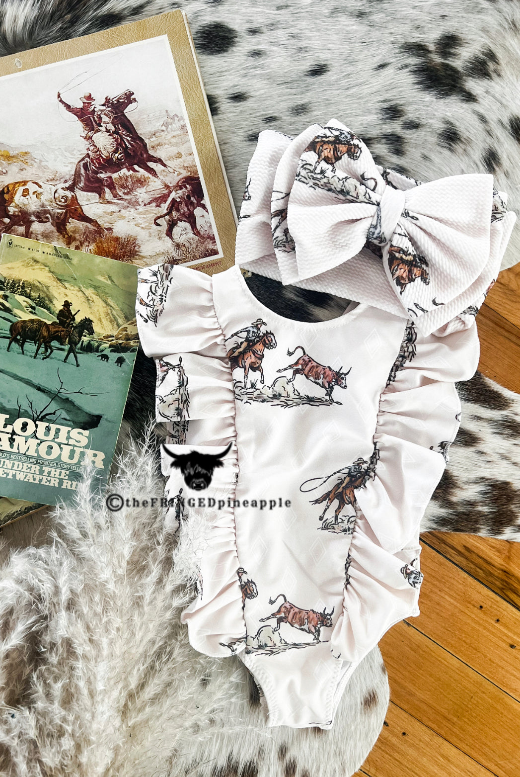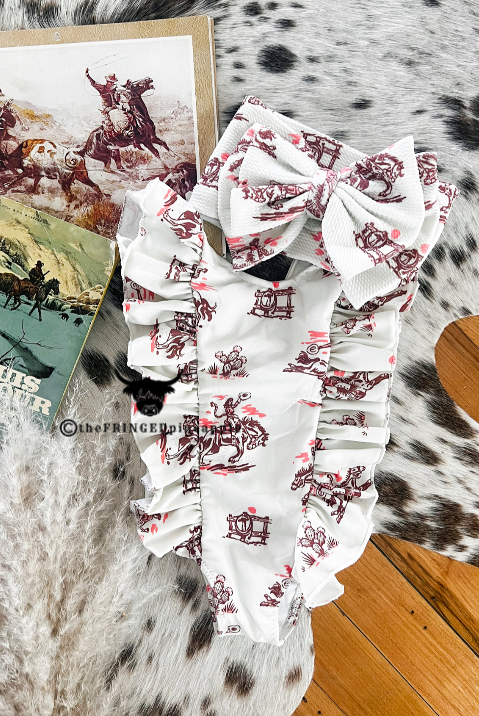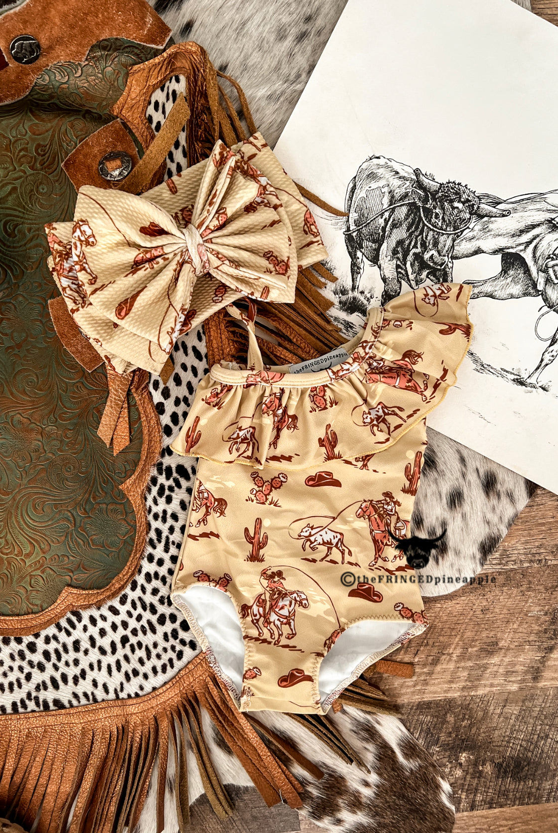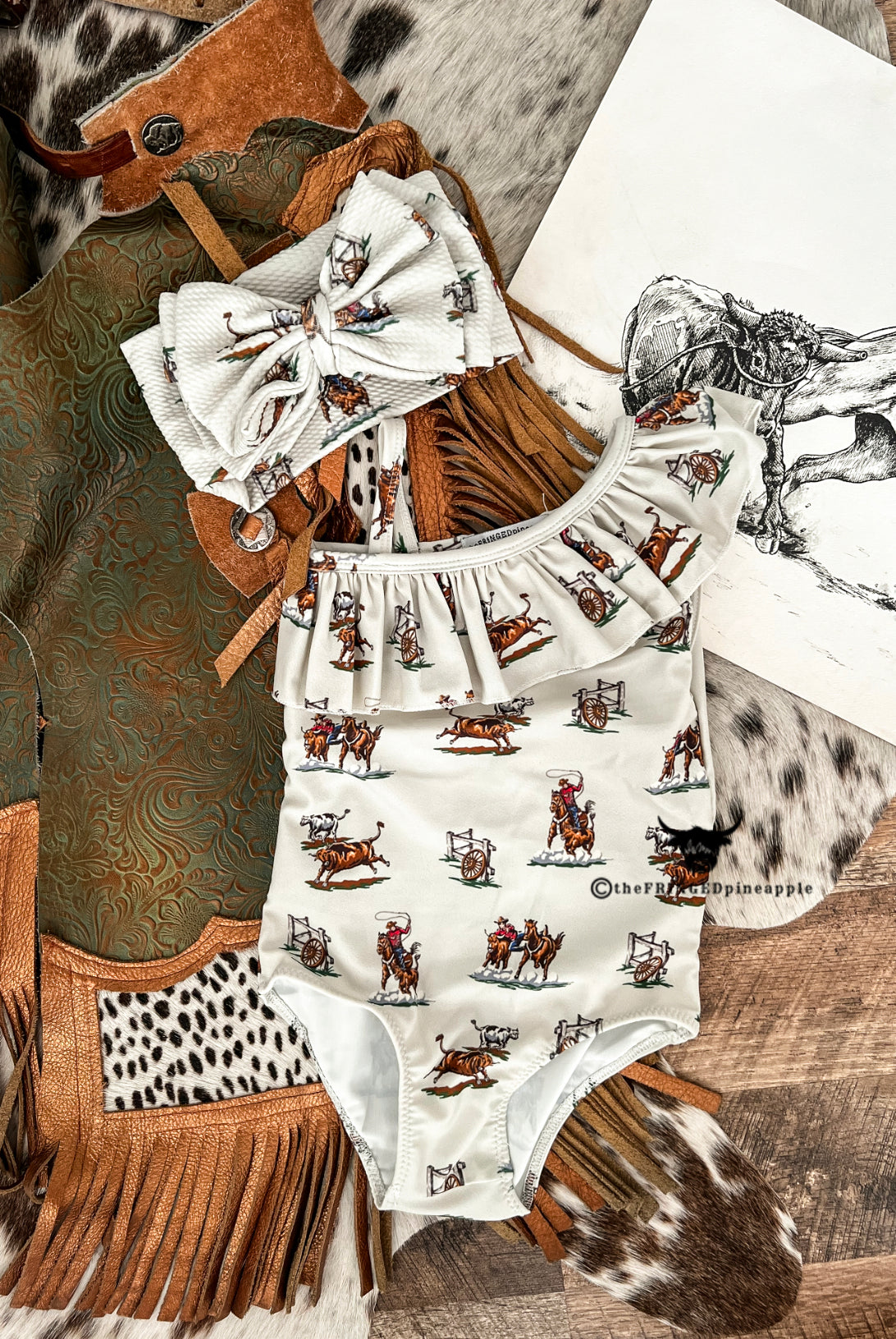 Sunset Cowgirl Ruffle Swimsuit (Cream)