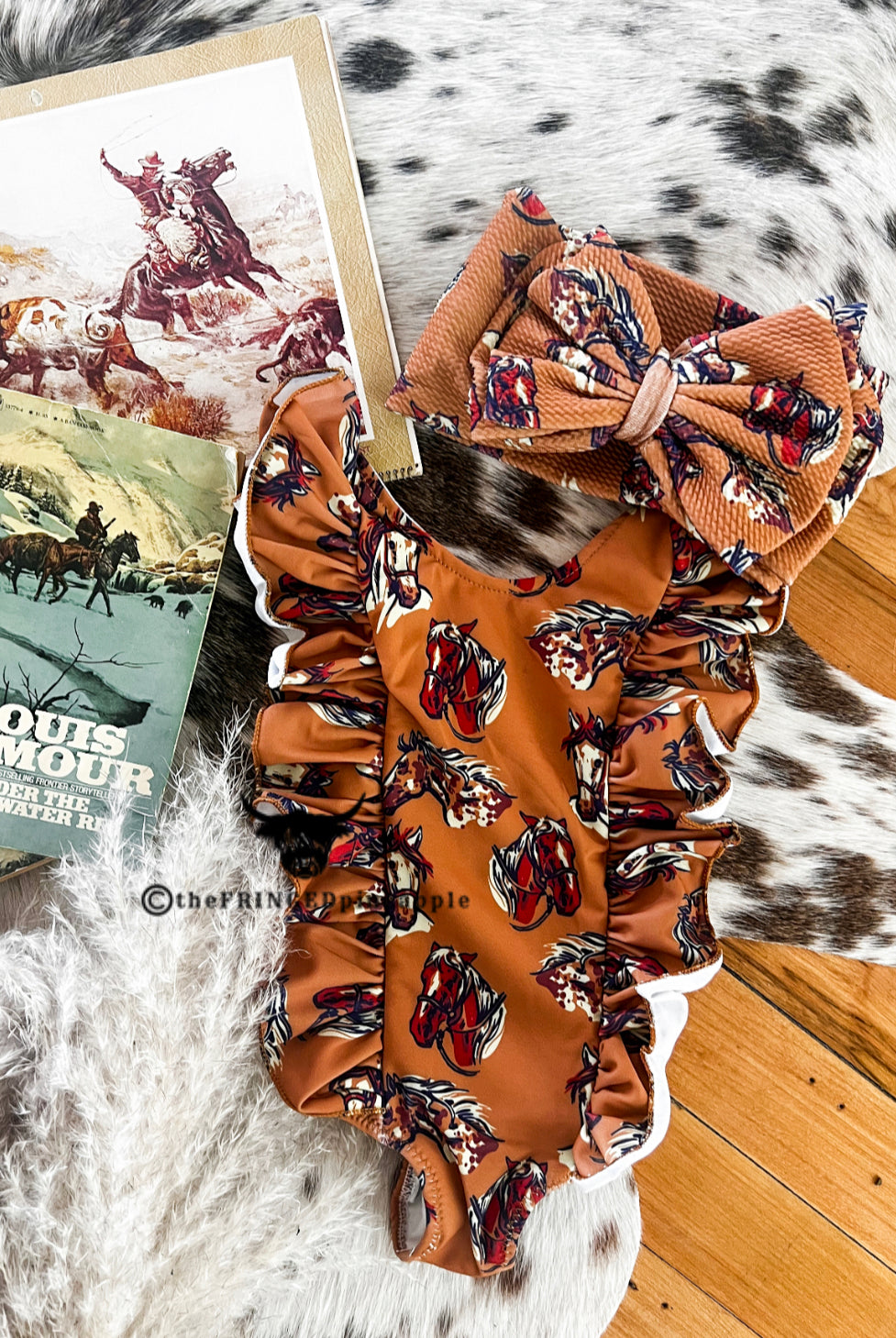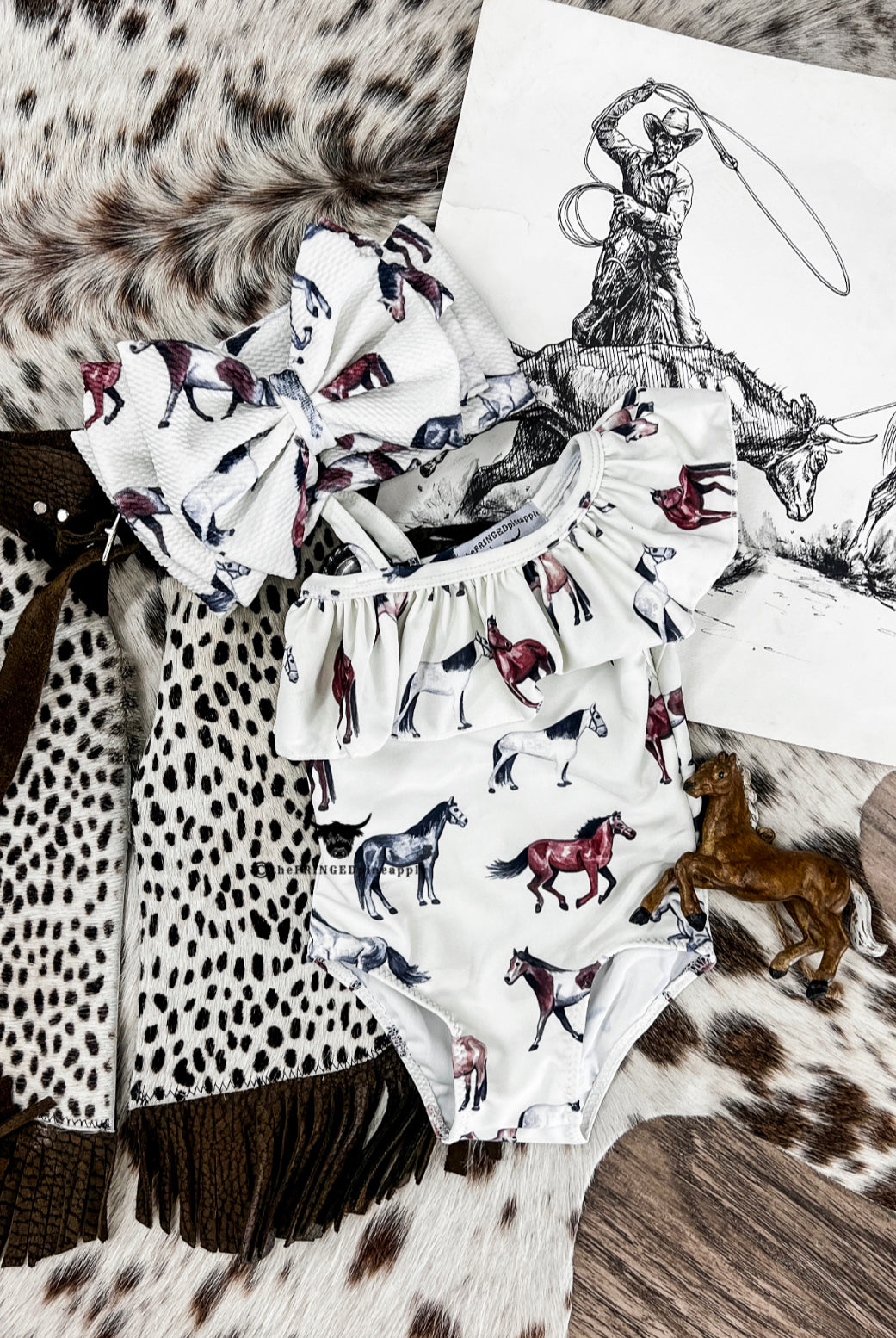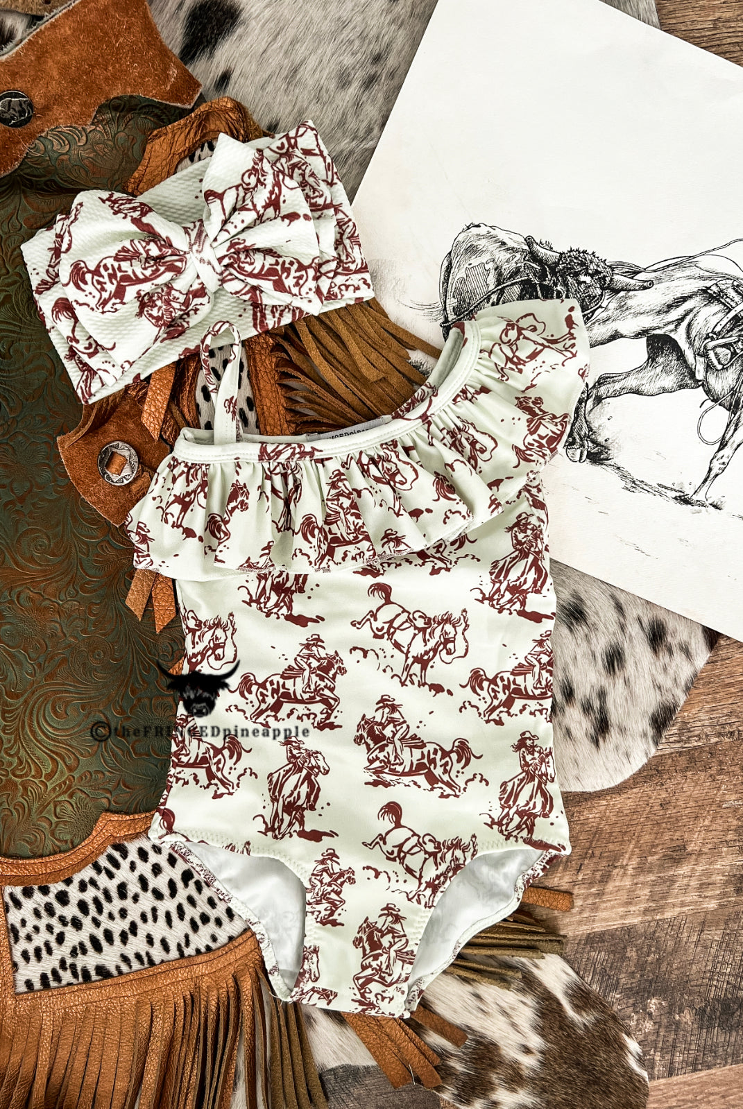 Sunset Cowgirl Ruffle Swimsuit (Cream)