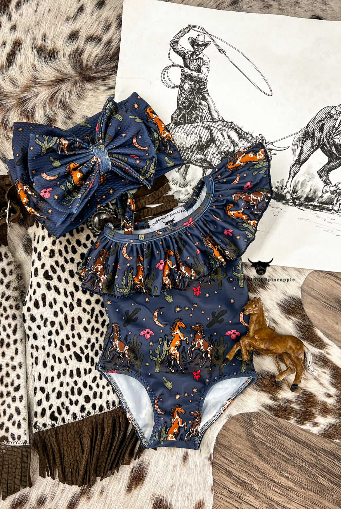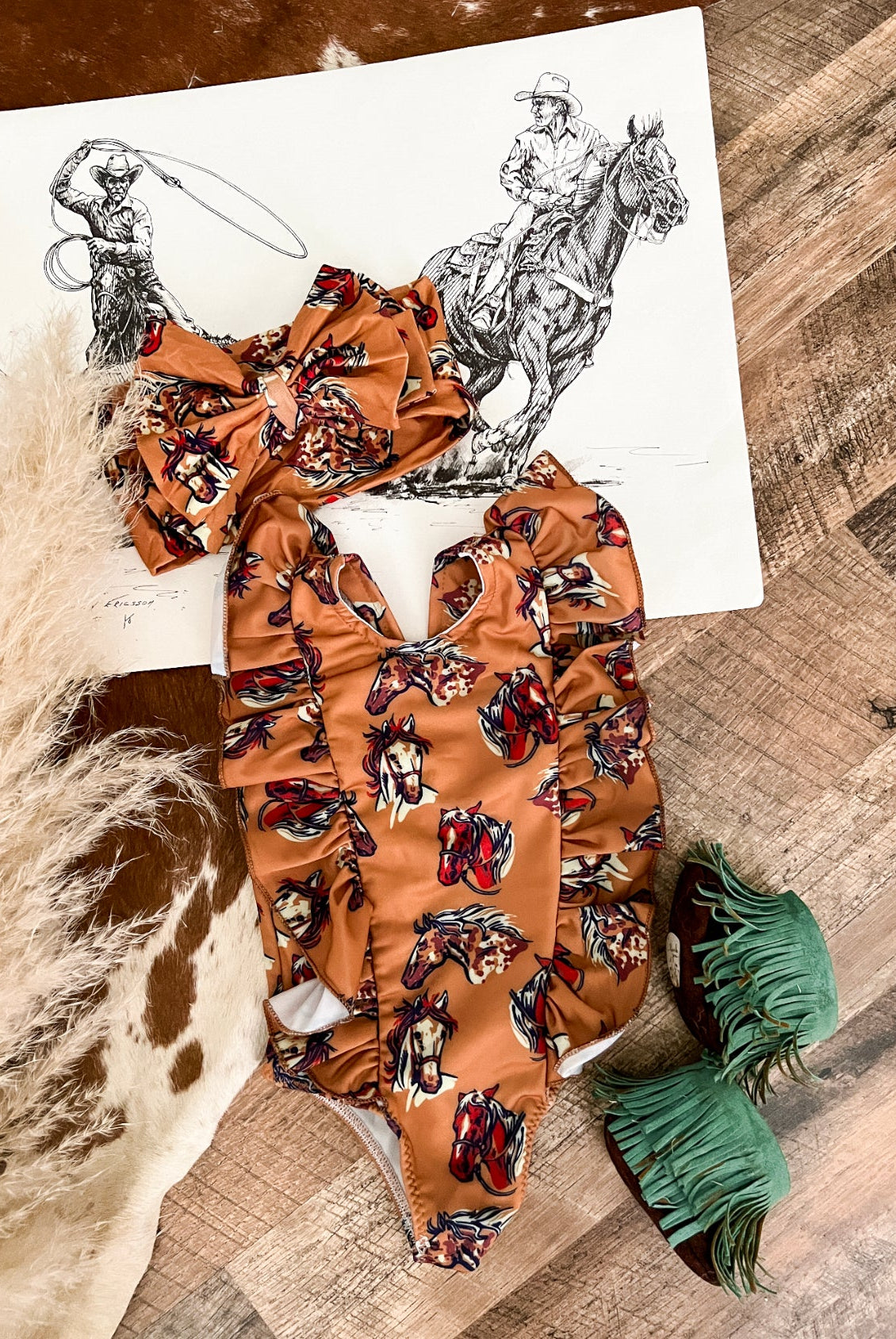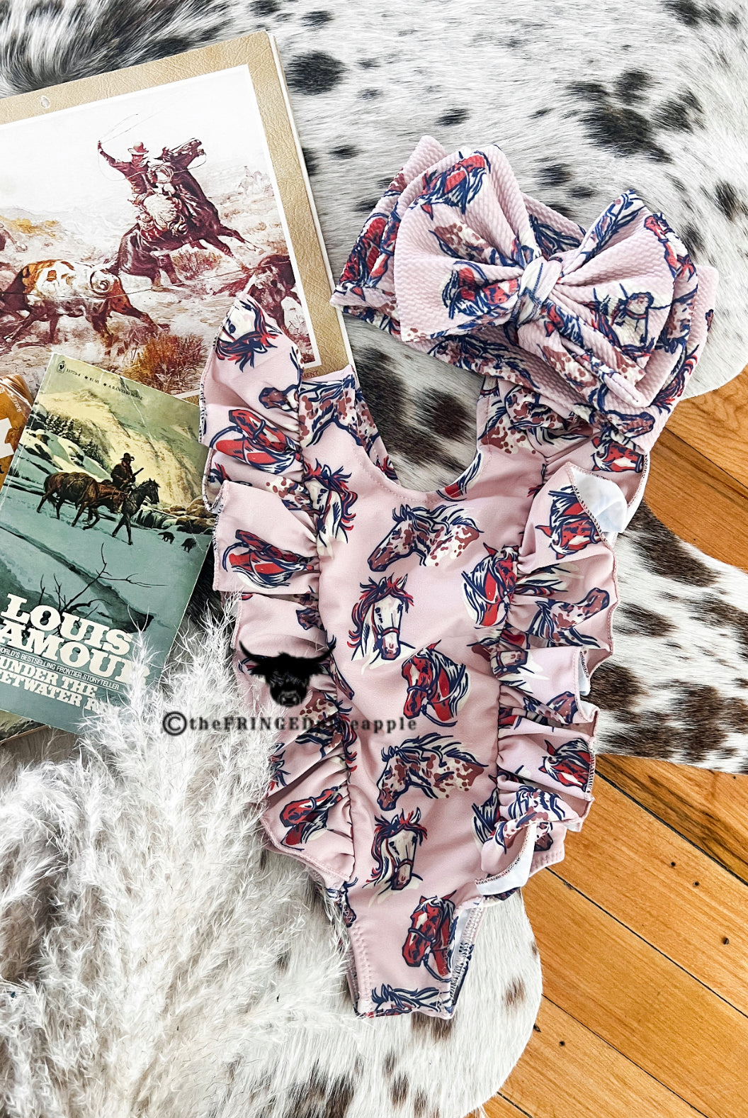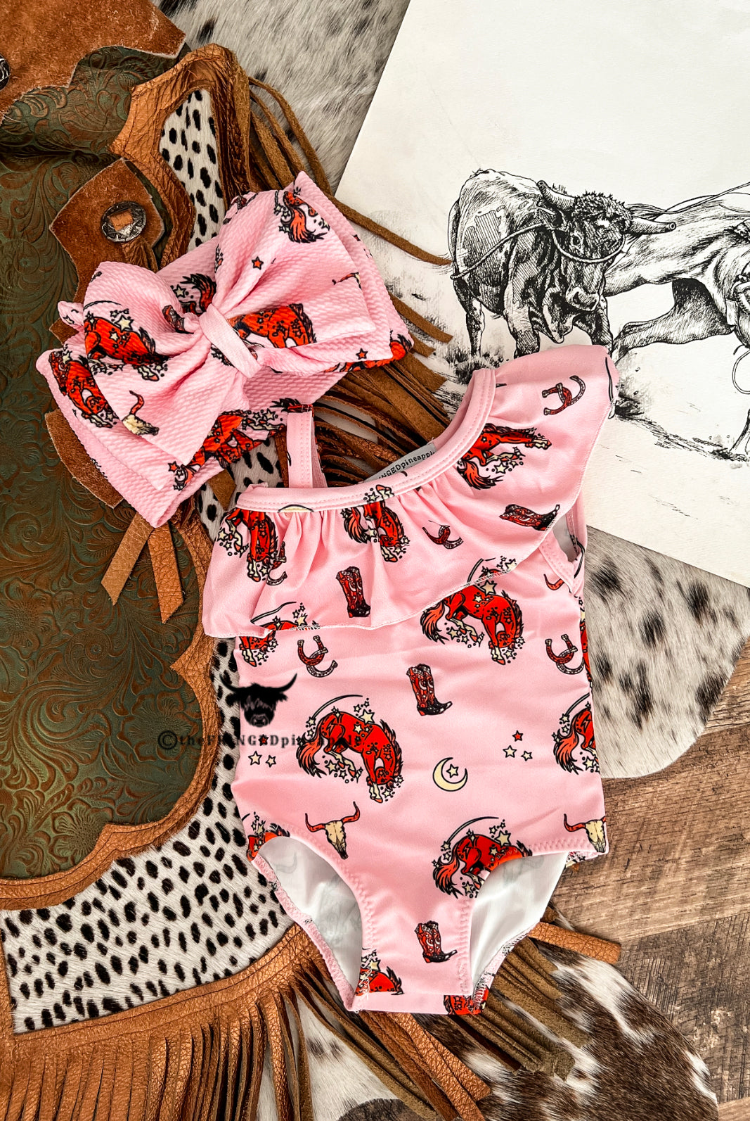 Sunset Cowgirl Ruffle Swimsuit (Cream)