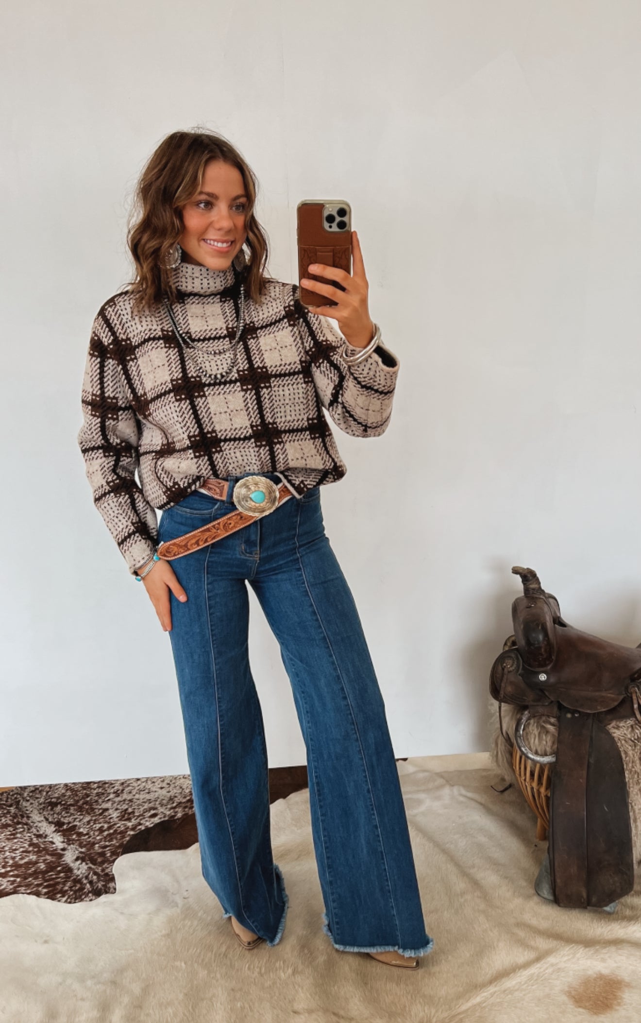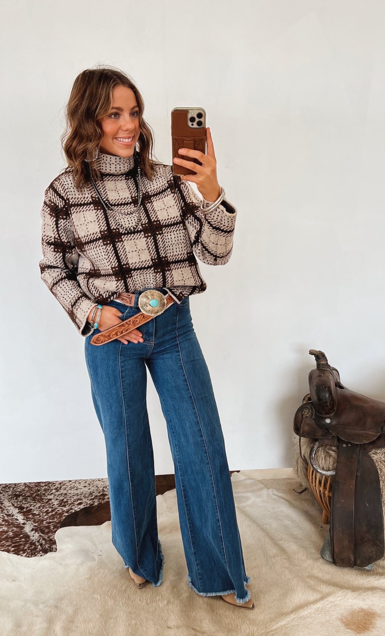 Casual, everyday style with a western-casual vibe