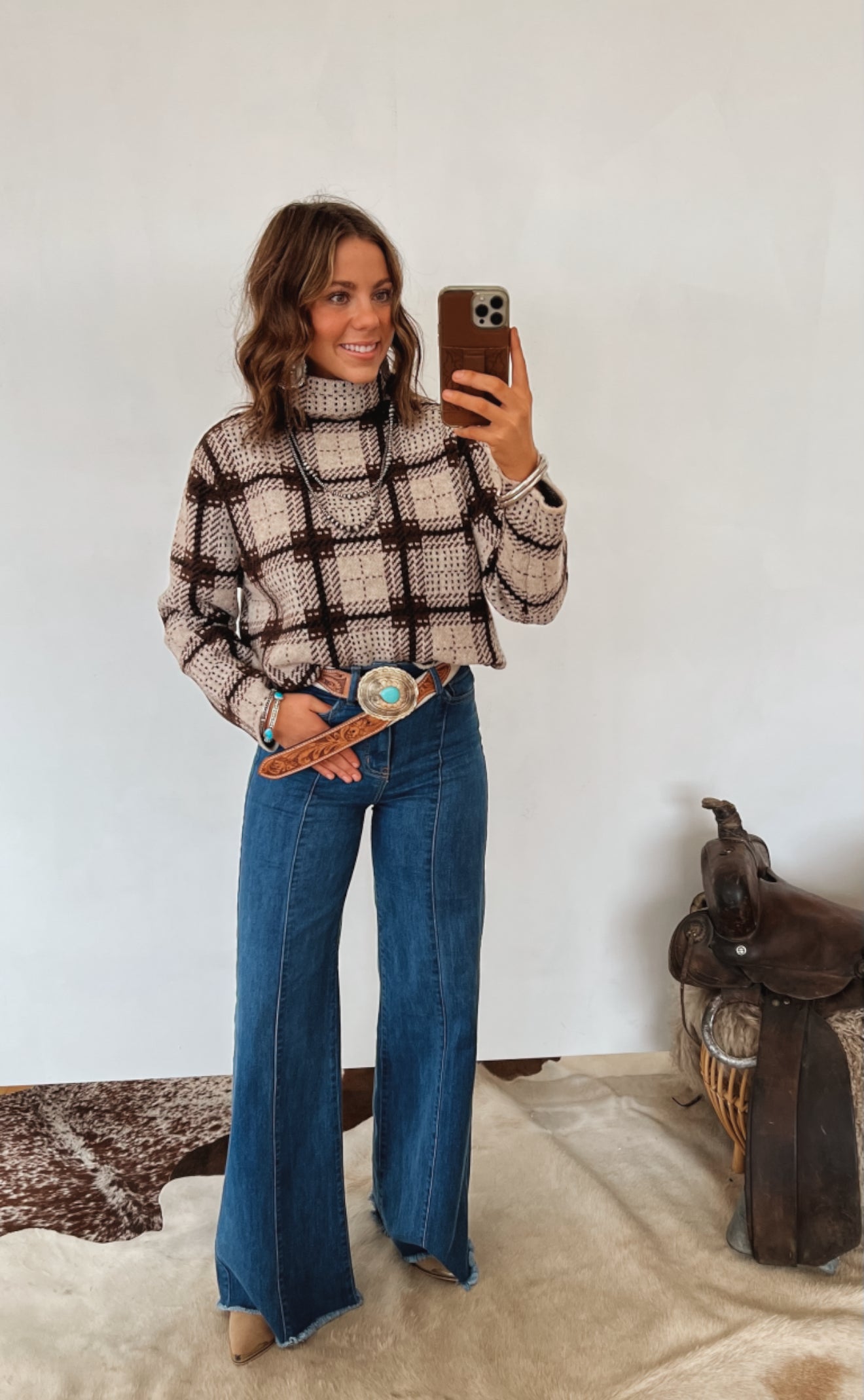 Cowboy Up Plaid Knit Sweater