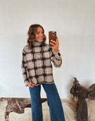 Cozy, warm, and effortlessly rustic — the Plaid Knit Sweater is your new cold-weather go-to. Made from a soft, brushed knit, this heavier-weight sweater brings all the comfort while giving you that timeless, lived-in plaid look. The high neckline adds an extra touch of snugness, and the relaxed silhouette keeps it casual, comfy, and perfect for everyday wear.