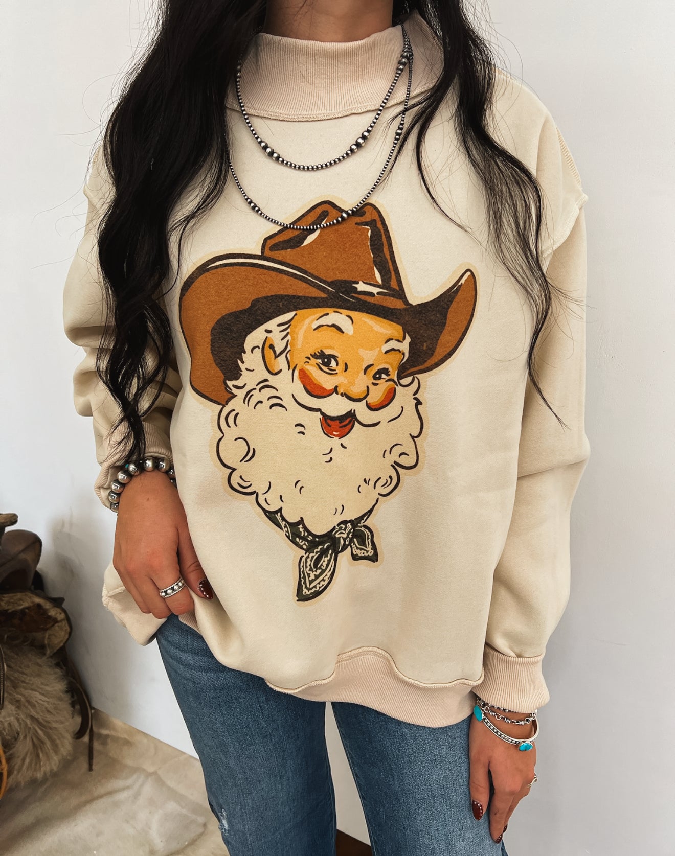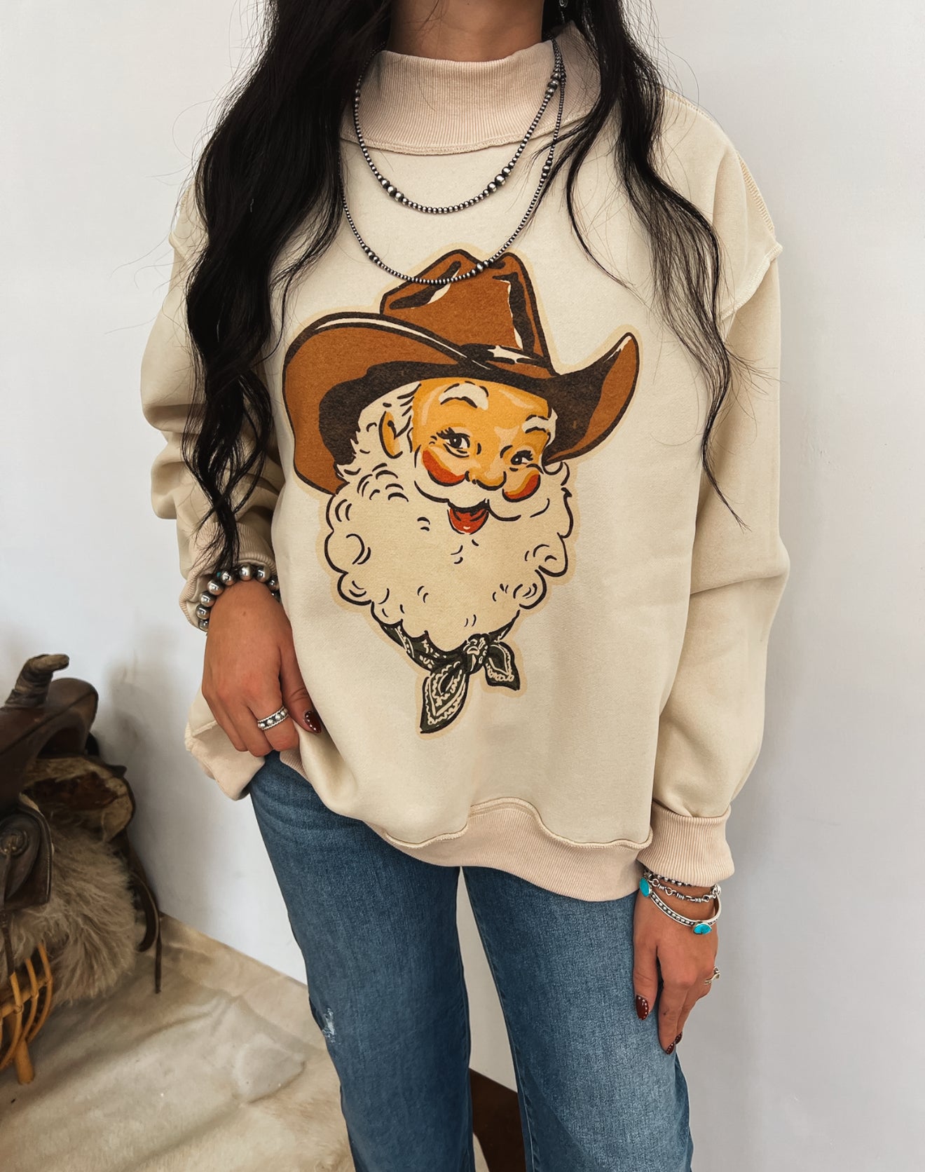 Cowboy Santa Mock Neck Sweatshirt (Cream)