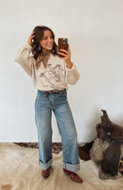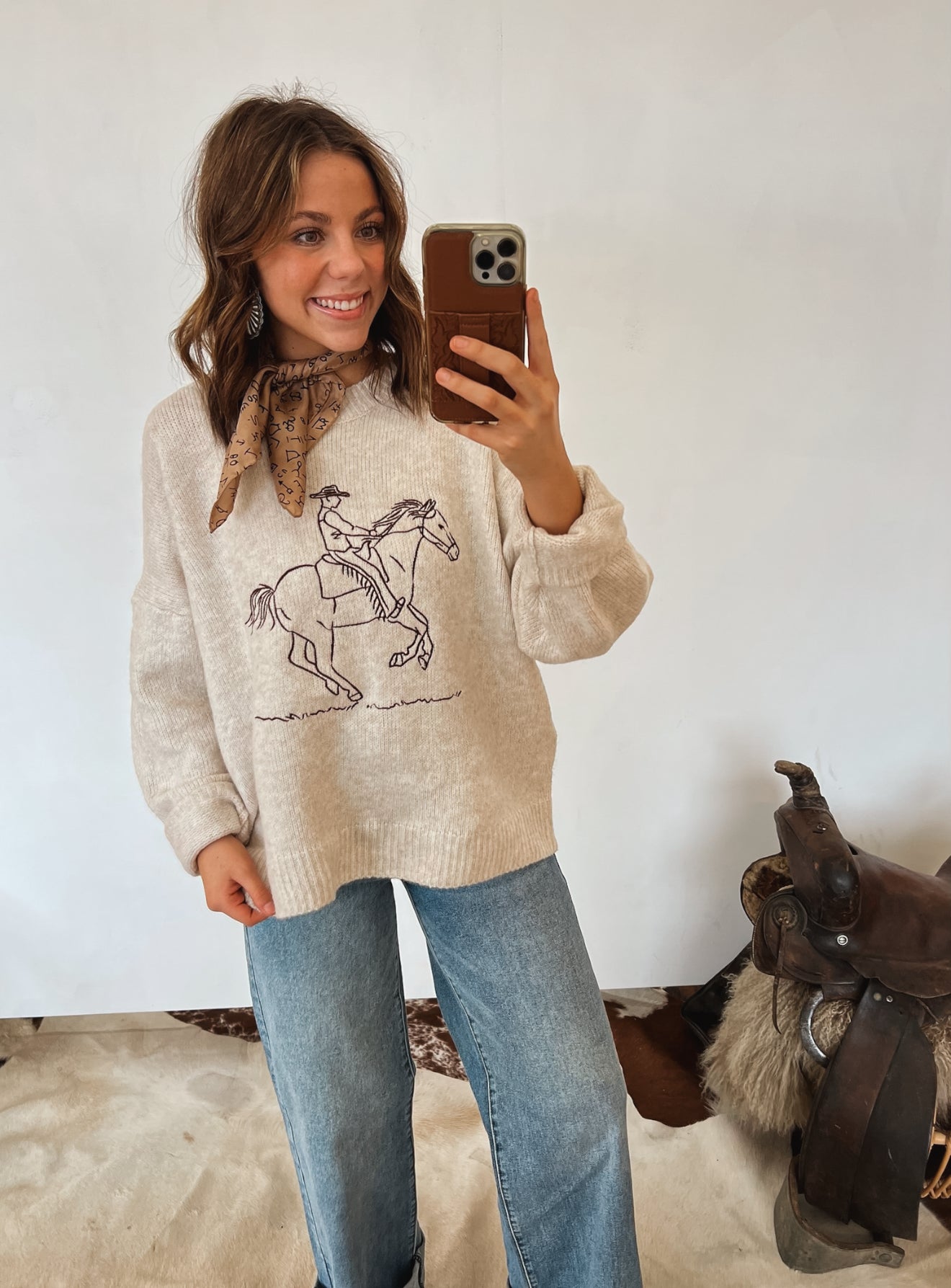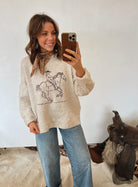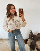 A cozy classic with a Western twist, this soft knit sweater features a woven horse design that stands out without feeling overdone. Made from a comfortable medium-weight knit, it offers a relaxed, easygoing fit with a clean crew neckline — perfect for everyday layering. Simple, timeless, and effortlessly Western, it’s a piece you’ll reach for all season long.
