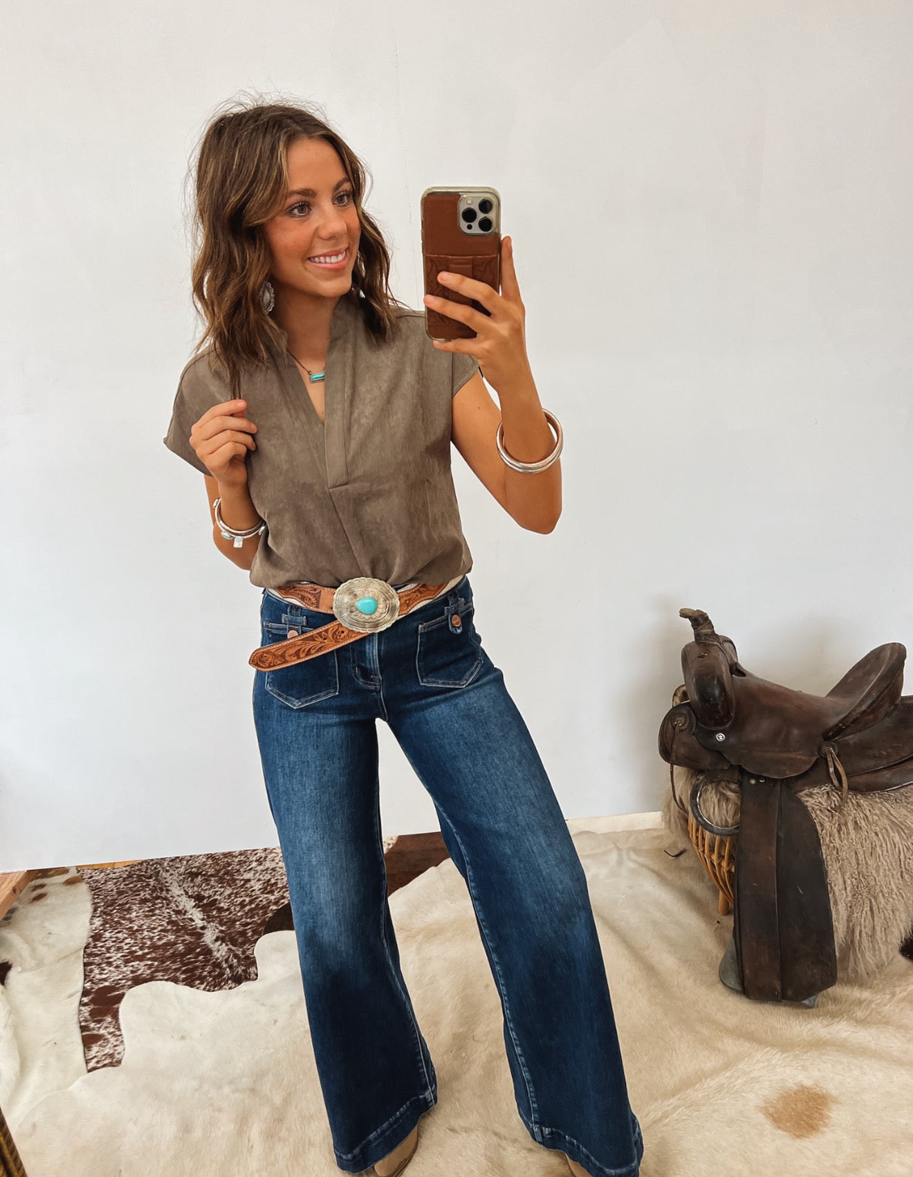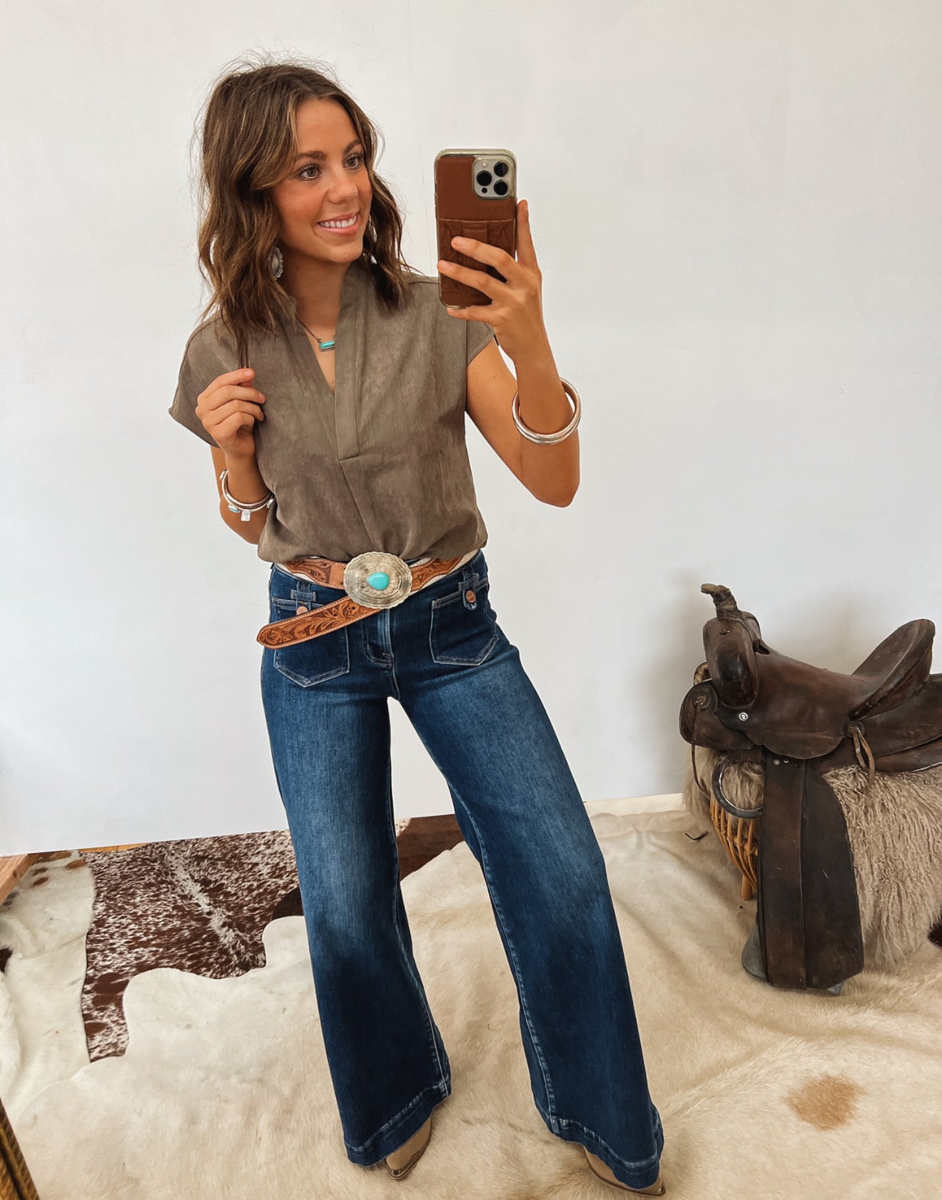 Tuck it into high-rise jeans, add a statement belt, and throw on your favorite boots for an understated western look that still feels chic. Or dress it up with trousers and layered jewelry for a classy, minimalist vibe.
