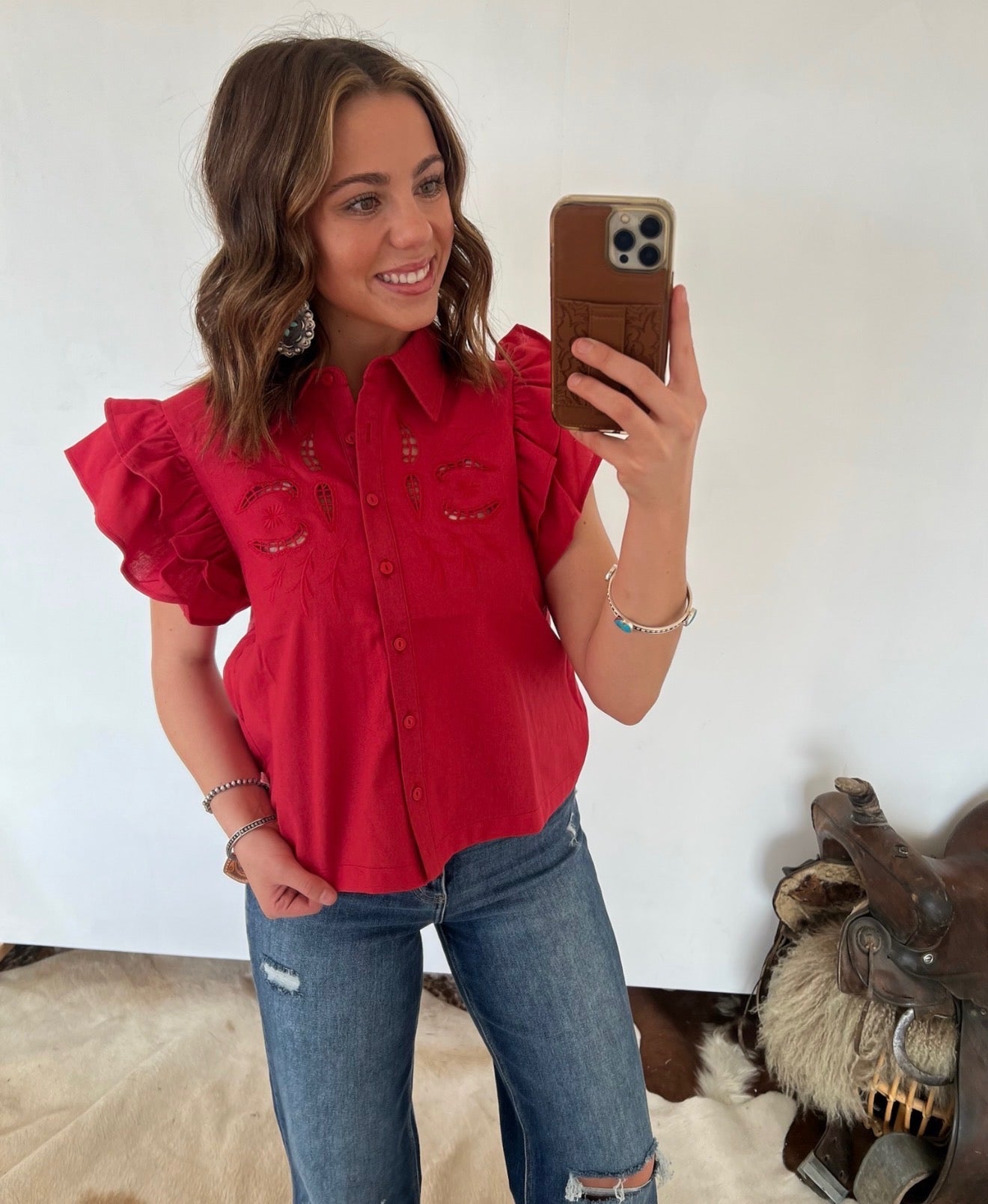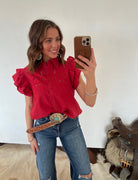 Soft ruffles meet timeless charm in the Lady Like Ruffle Top. Designed with a delicate high neckline, flutter sleeves, and subtle lace accents, this blouse is perfect for days when you want to feel a little extra—without overthinking it. The lightweight fabric drapes beautifully, offering a polished silhouette that pairs just as well with denim as it does with skirts.