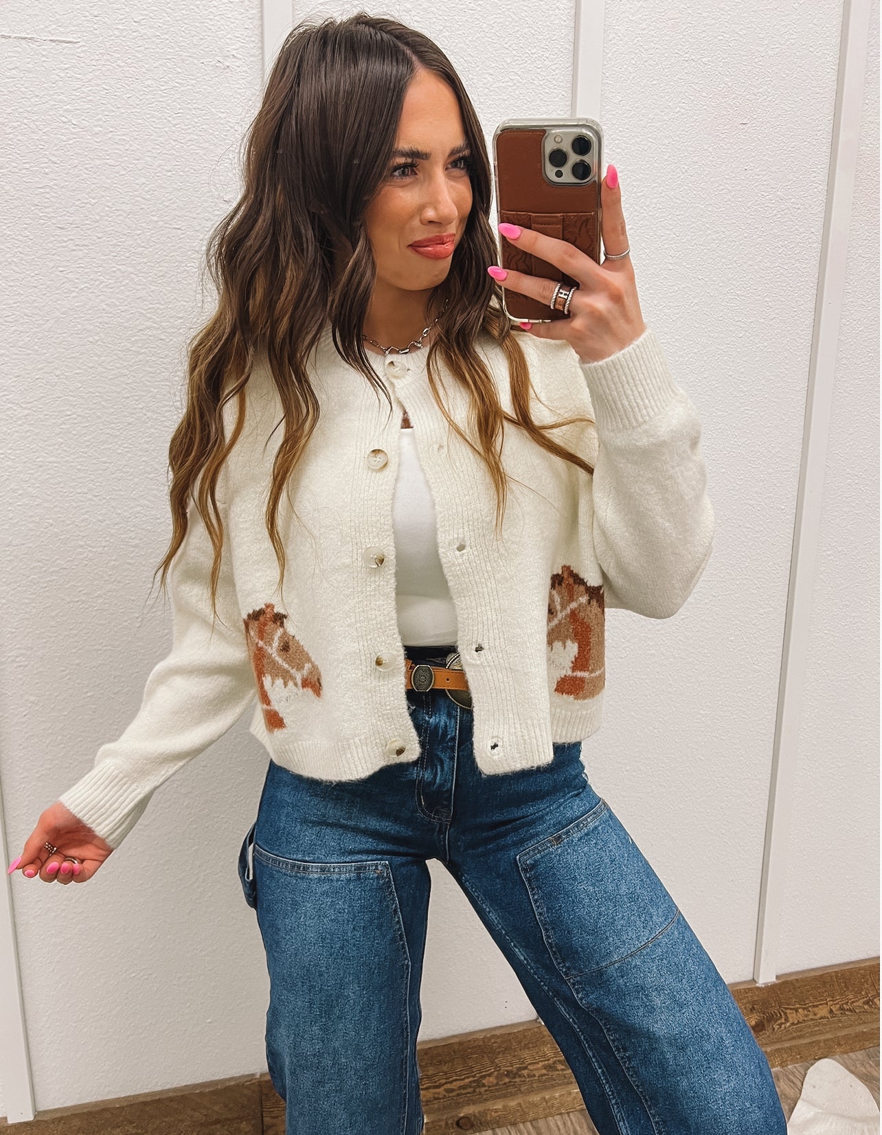 Saddle up in style with our Horsin' Around Cardigan.
