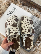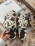 Western charm meets everyday comfort with The Jolene Clog Mules. Featuring a soft cow print suede finish, silver buckle detail, and stud accents, these slip-ons bring a rustic yet modern vibe to your look. The cushioned insole makes them perfect for all-day wear.