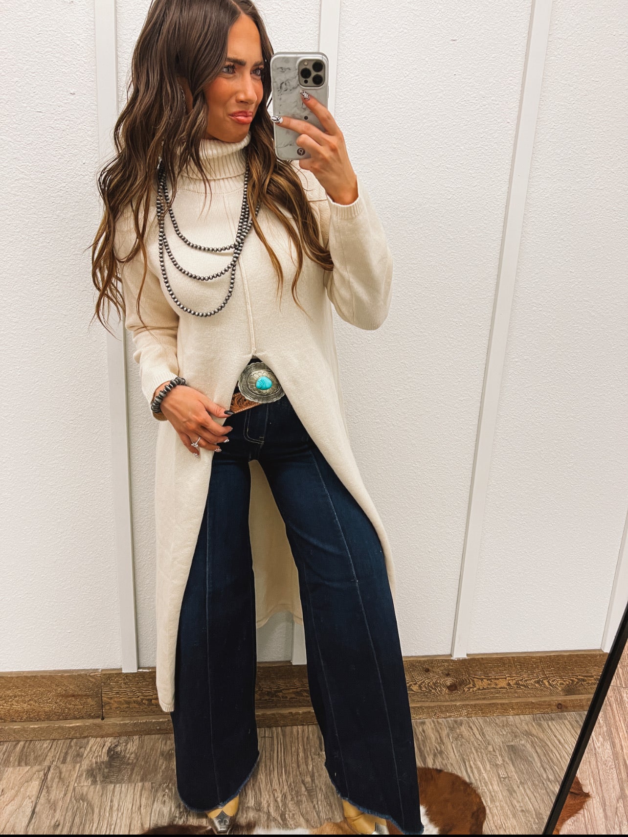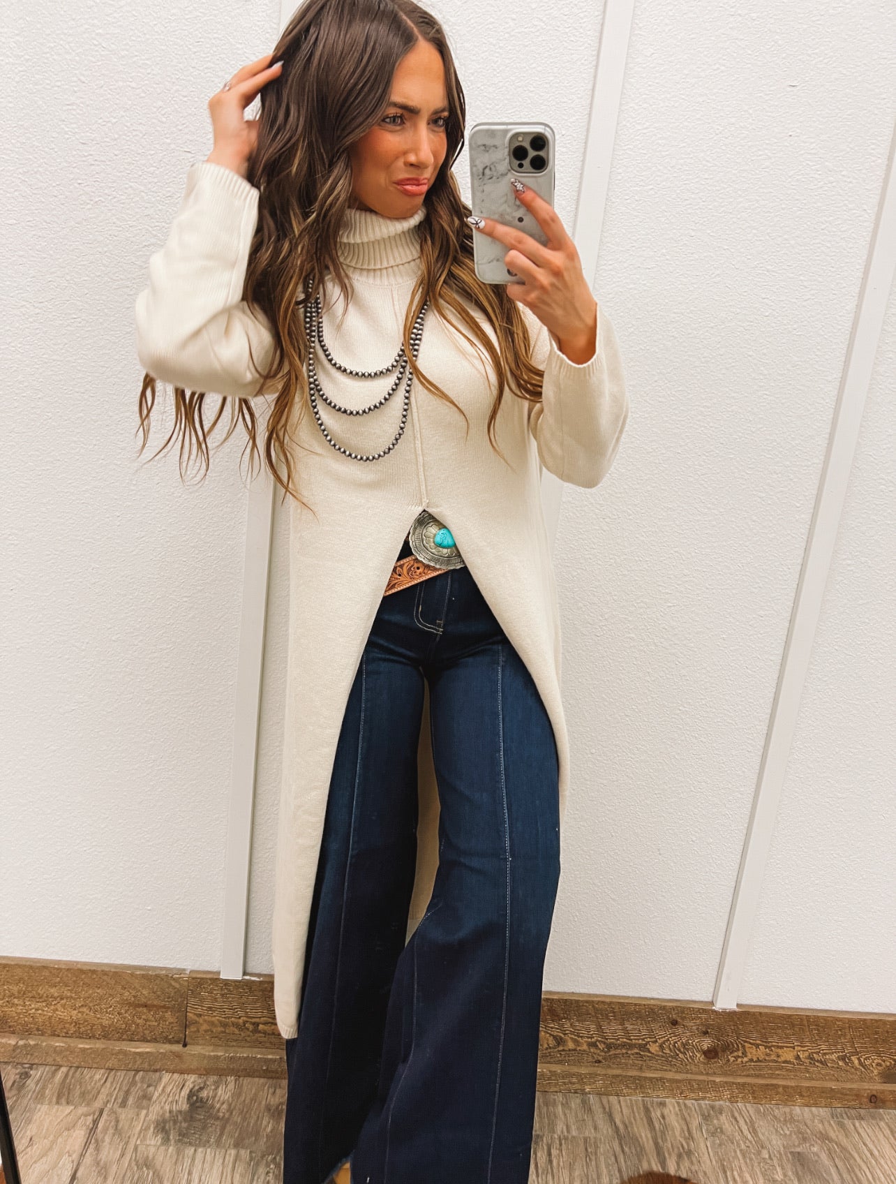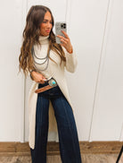 Turtle Neck Sweater Dress With Slit (Ecru)