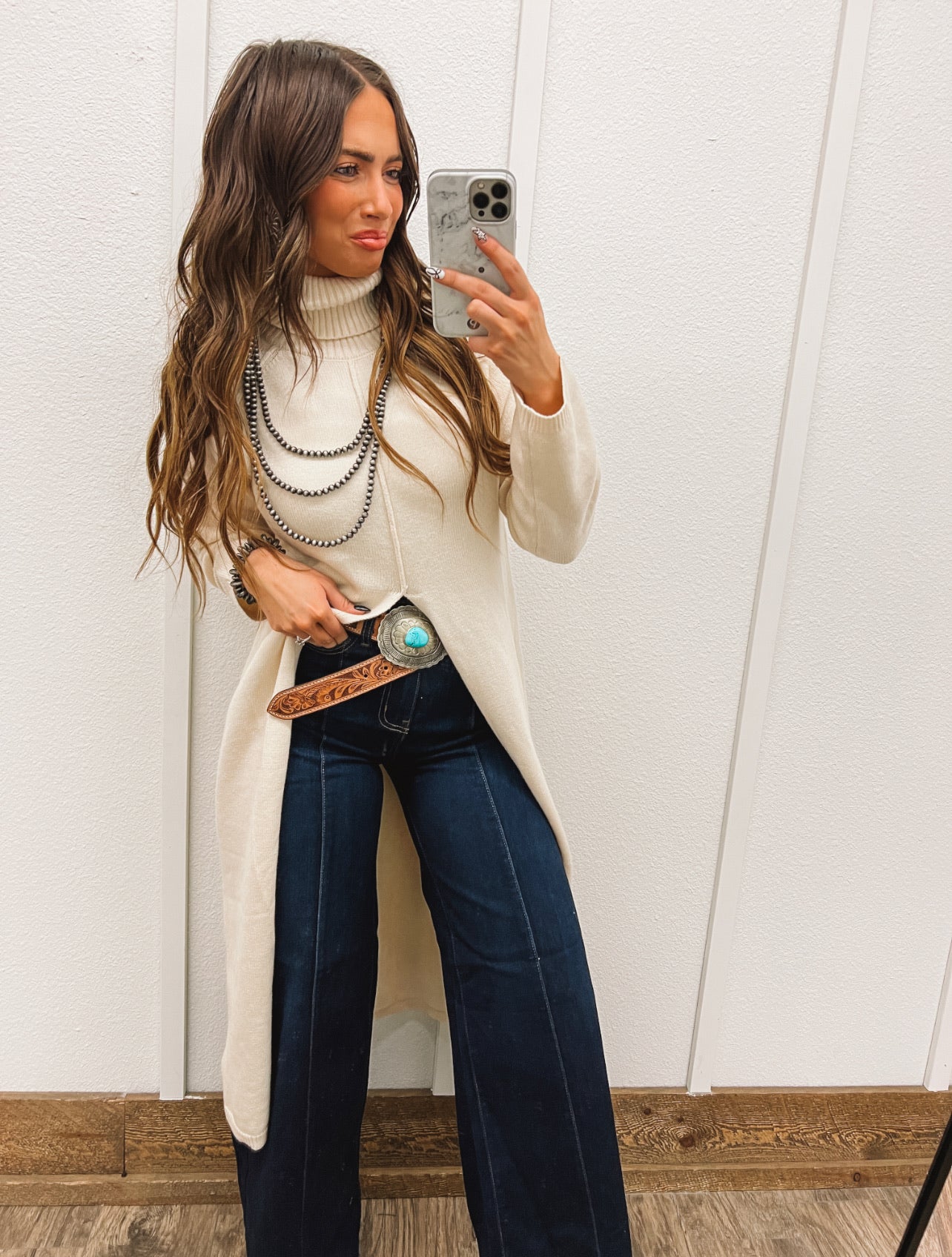 Stay warm and stylish with our Turtle Neck Sweater Dress. This dress features a cozy turtleneck and a chic slit for added flair. Perfect for any occasion, this dress will keep you looking and feeling great all day long.
